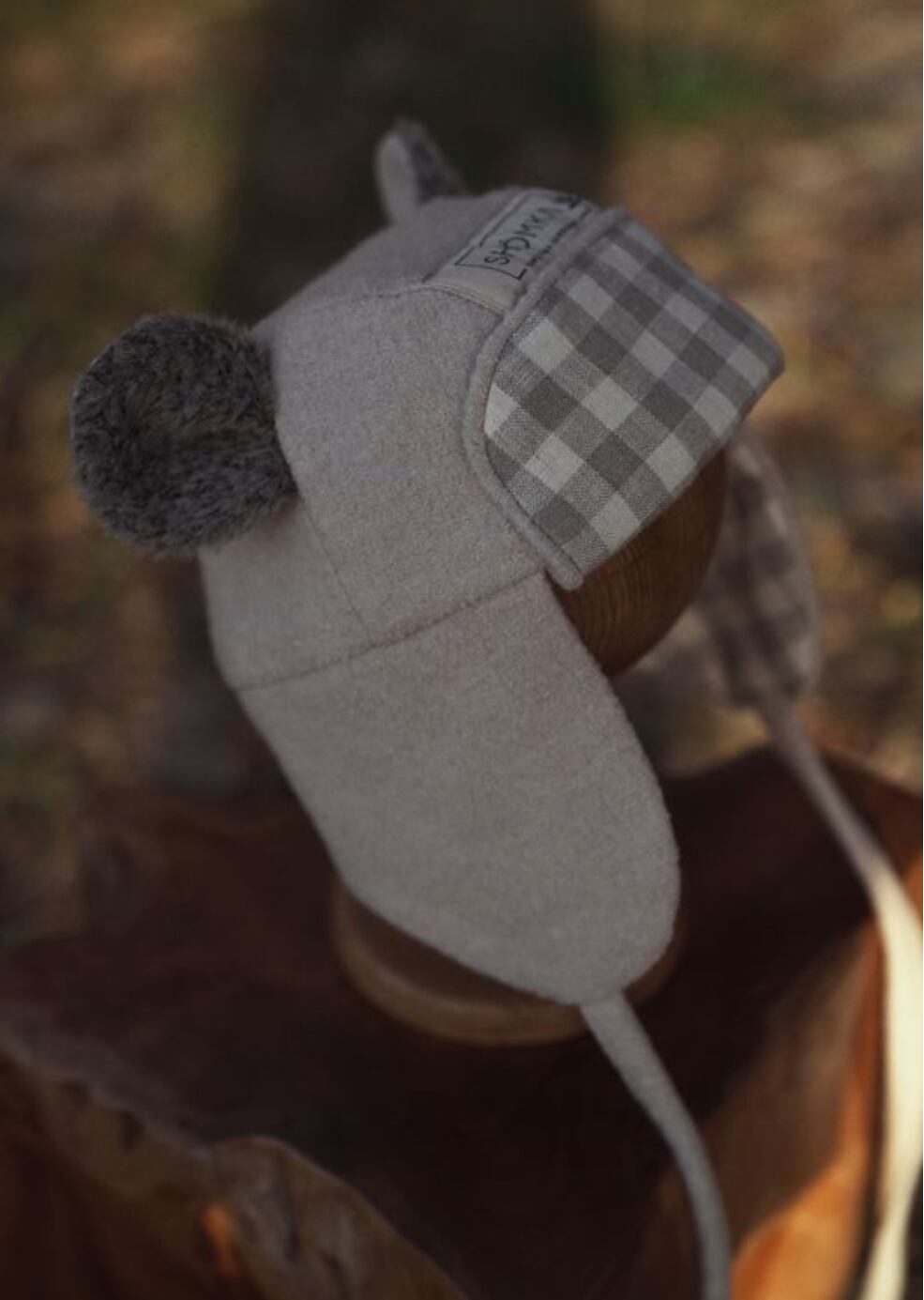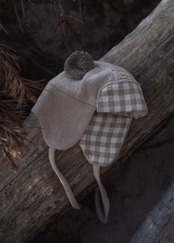 ボンネットに耳当てとつばが付いたおしゃれなハット。