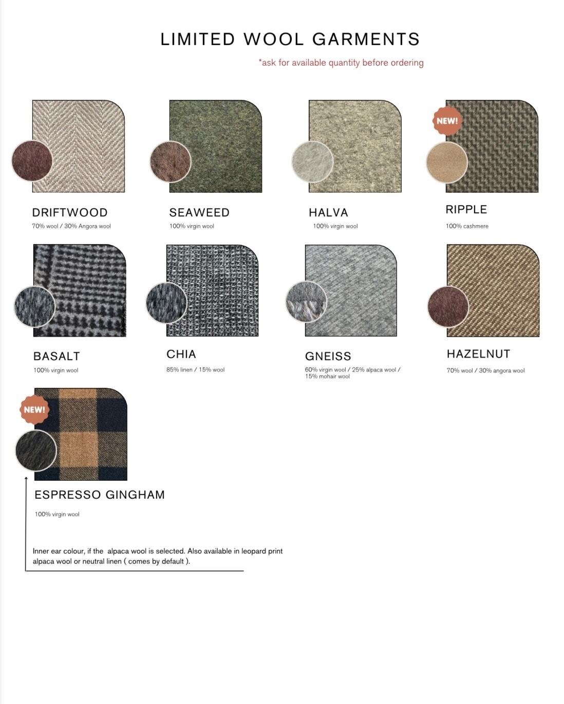 表地はウール、裏地はリネンの生地からお選びいただけます。