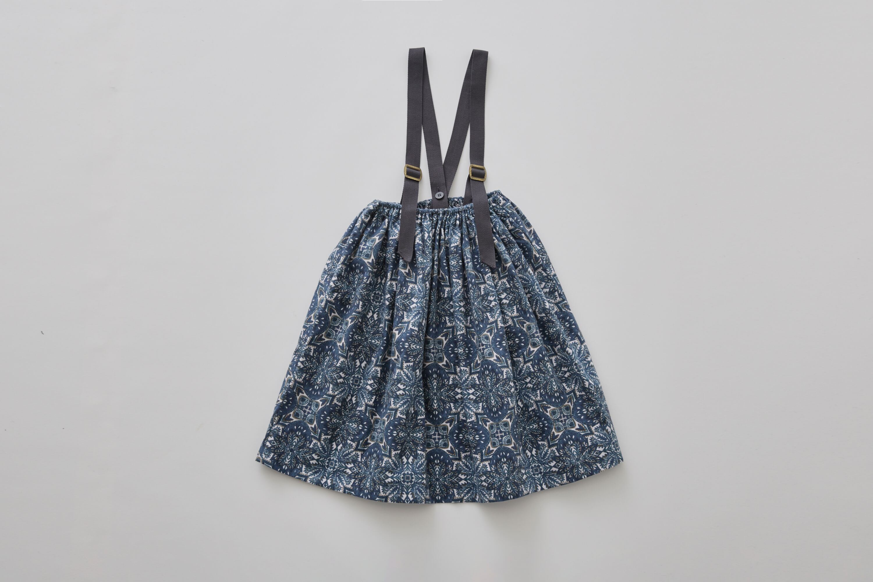 取り外し可能なサスペンダー付きのスカートはウェストゴムで着脱が簡単な定番デザインです。