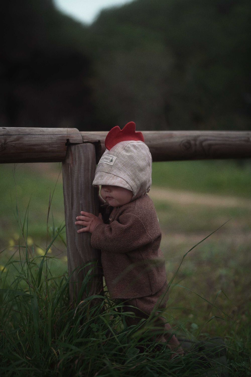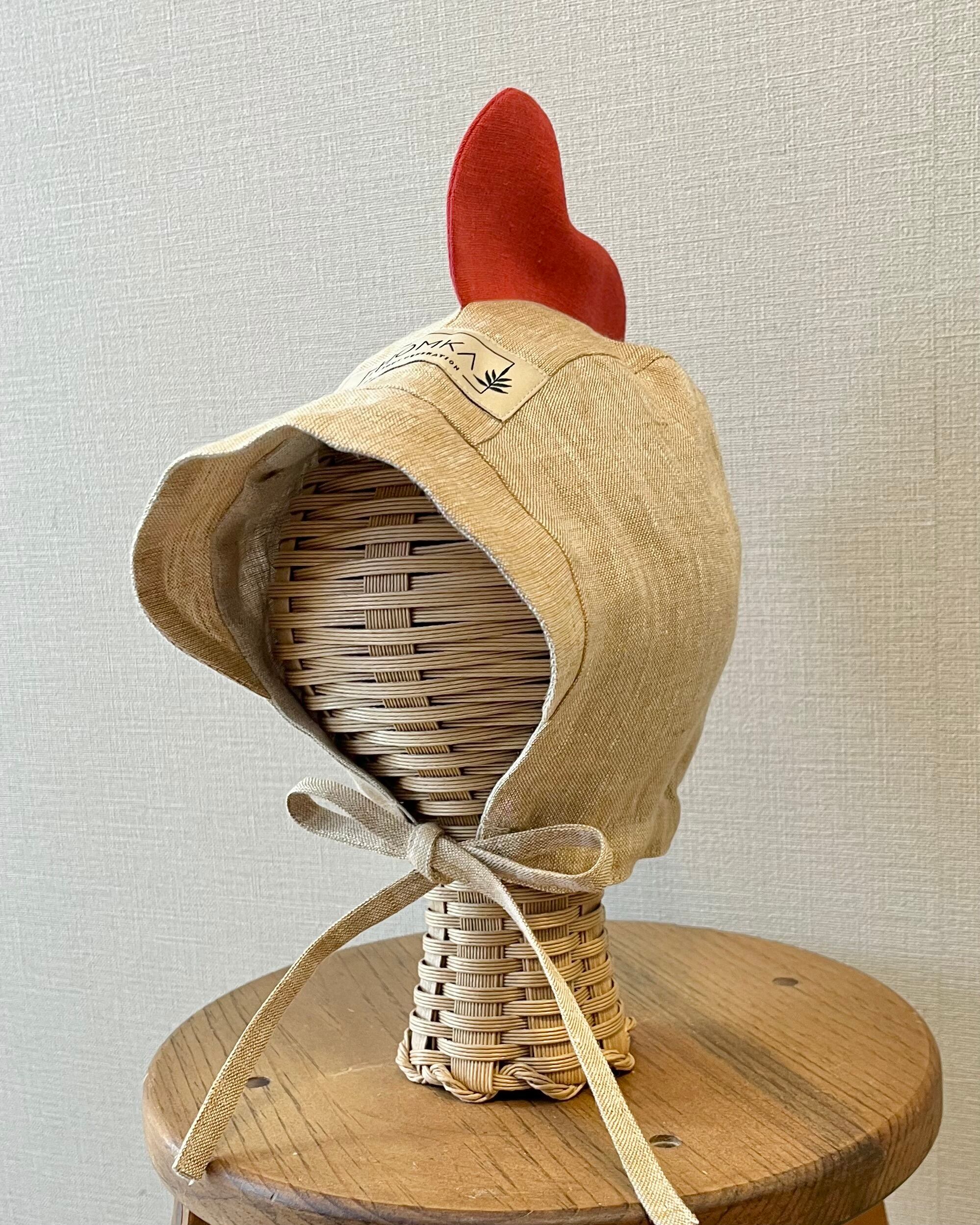 ss25 DROP2の新作、チキンボンネットは鶏のとさかがとってもキュートなモデル。