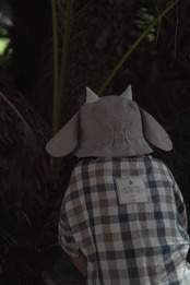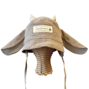 ss25 DROP2の新作、カウハットは牛さんの大きなたれ耳とちょこんと乗った角がとってもキュートなモデル。