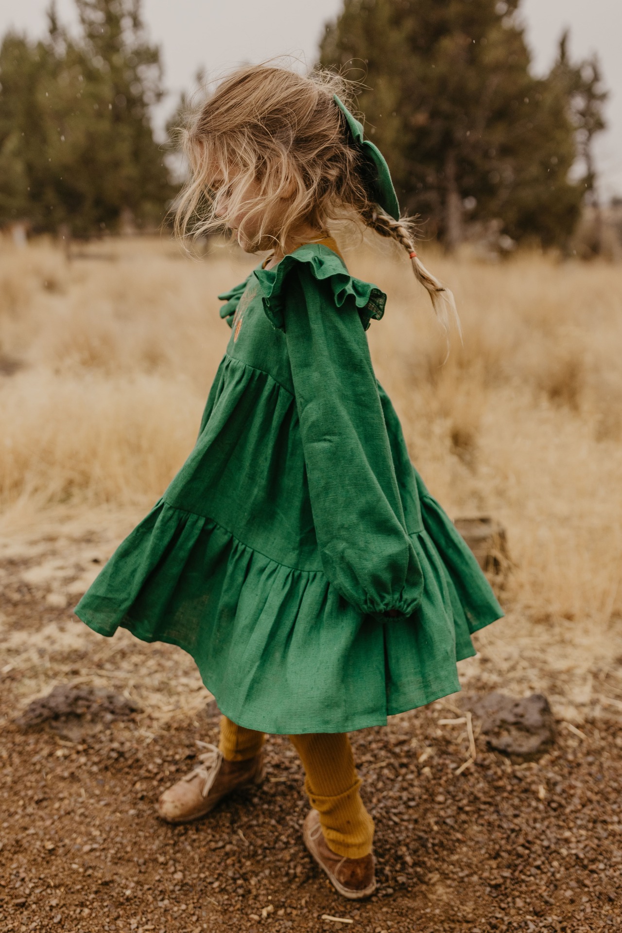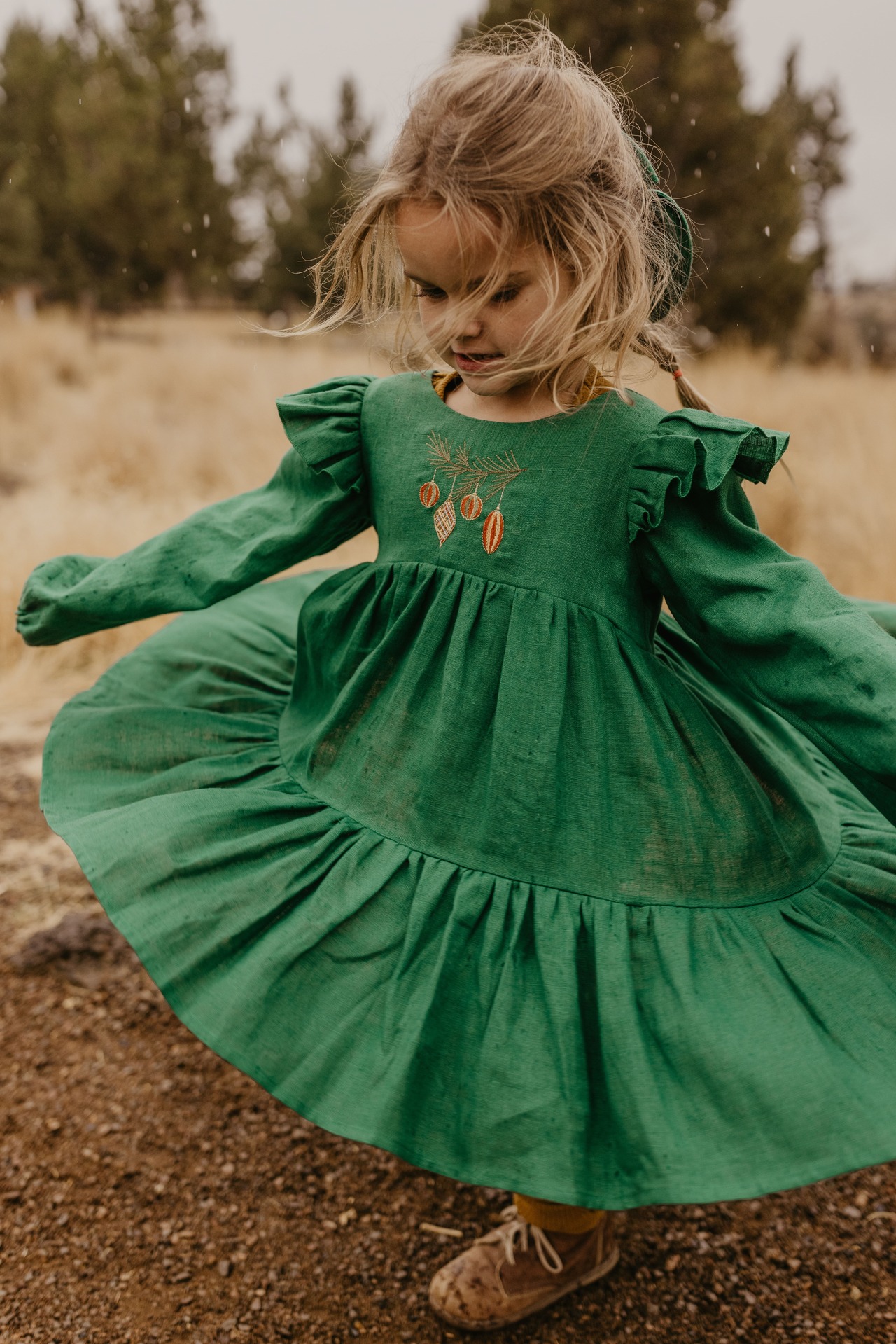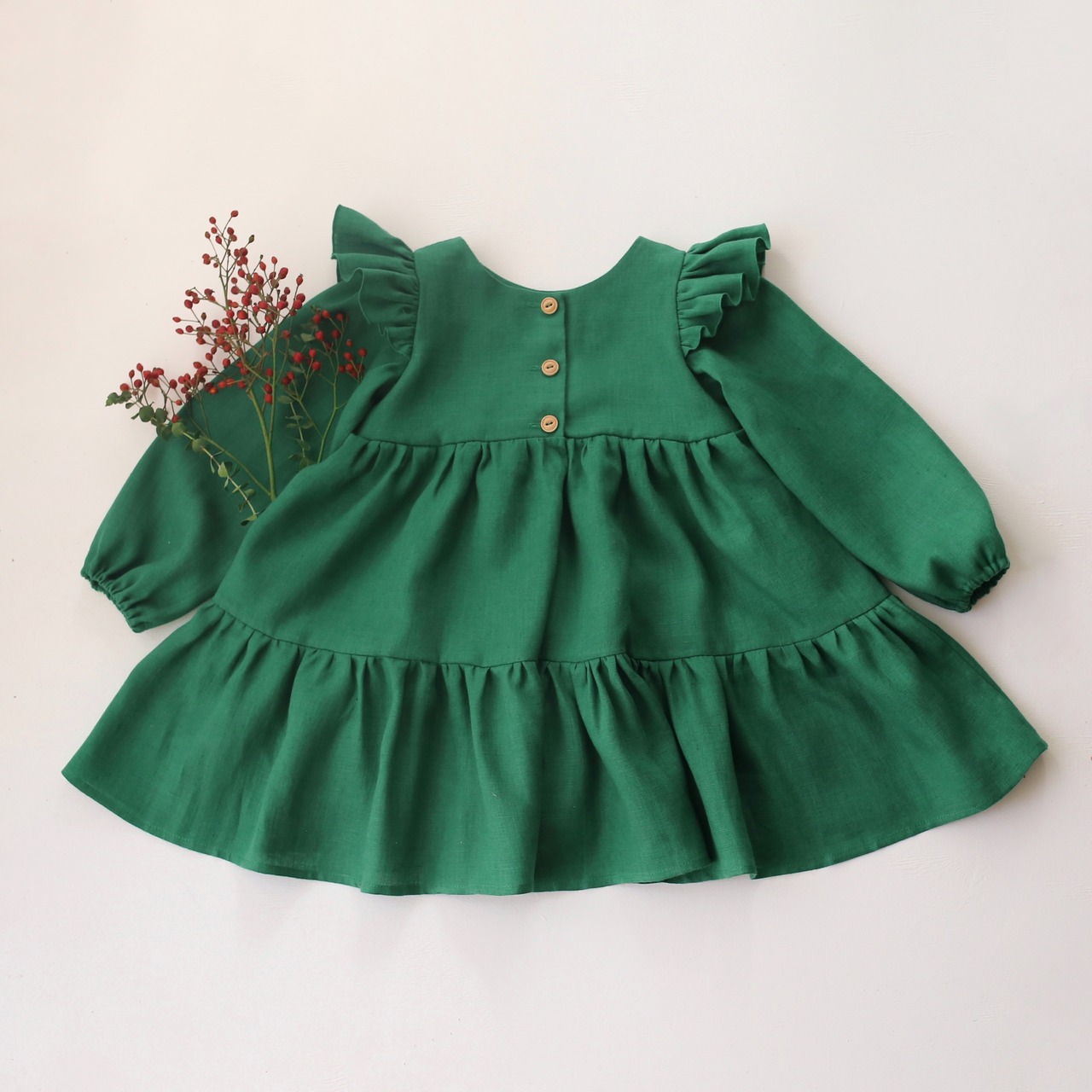 スカートは軽やかなティアード仕立てで、動くたびに揺れるシルエットが魅力です。