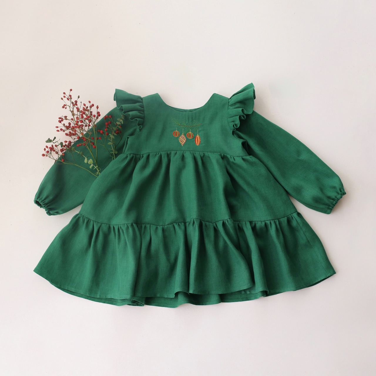 《 予約 》【 Dannie and Lilou 】Full Length Flutter Sleeve Tiered Dress - HOLIDAY COLLECTION -