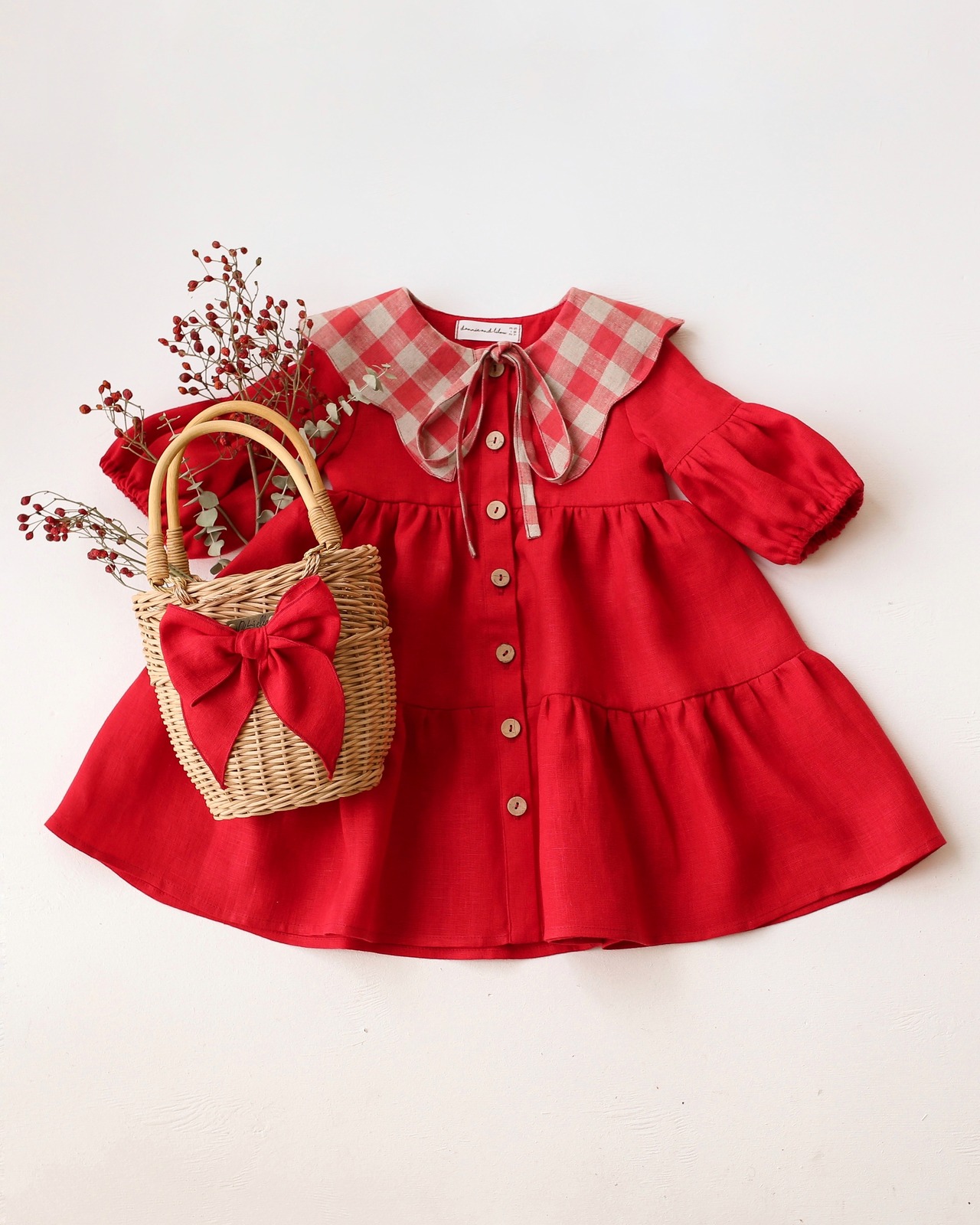 《 予約 》【 Dannie and Lilou 】Lantern Sleeve Tiered Dress with Scalloped Collar - HOLIDAY COLLECTION -