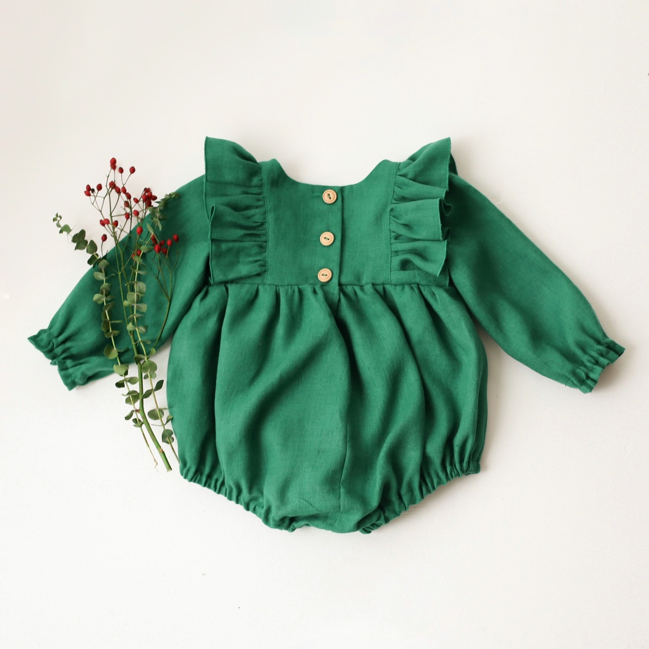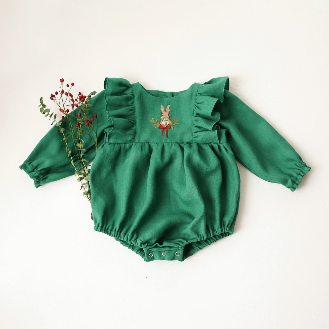 《 予約 》【 Dannie and Lilou 】Long Sleeve Ruffle Bubble Playsuit - HOLIDAY COLLECTION -