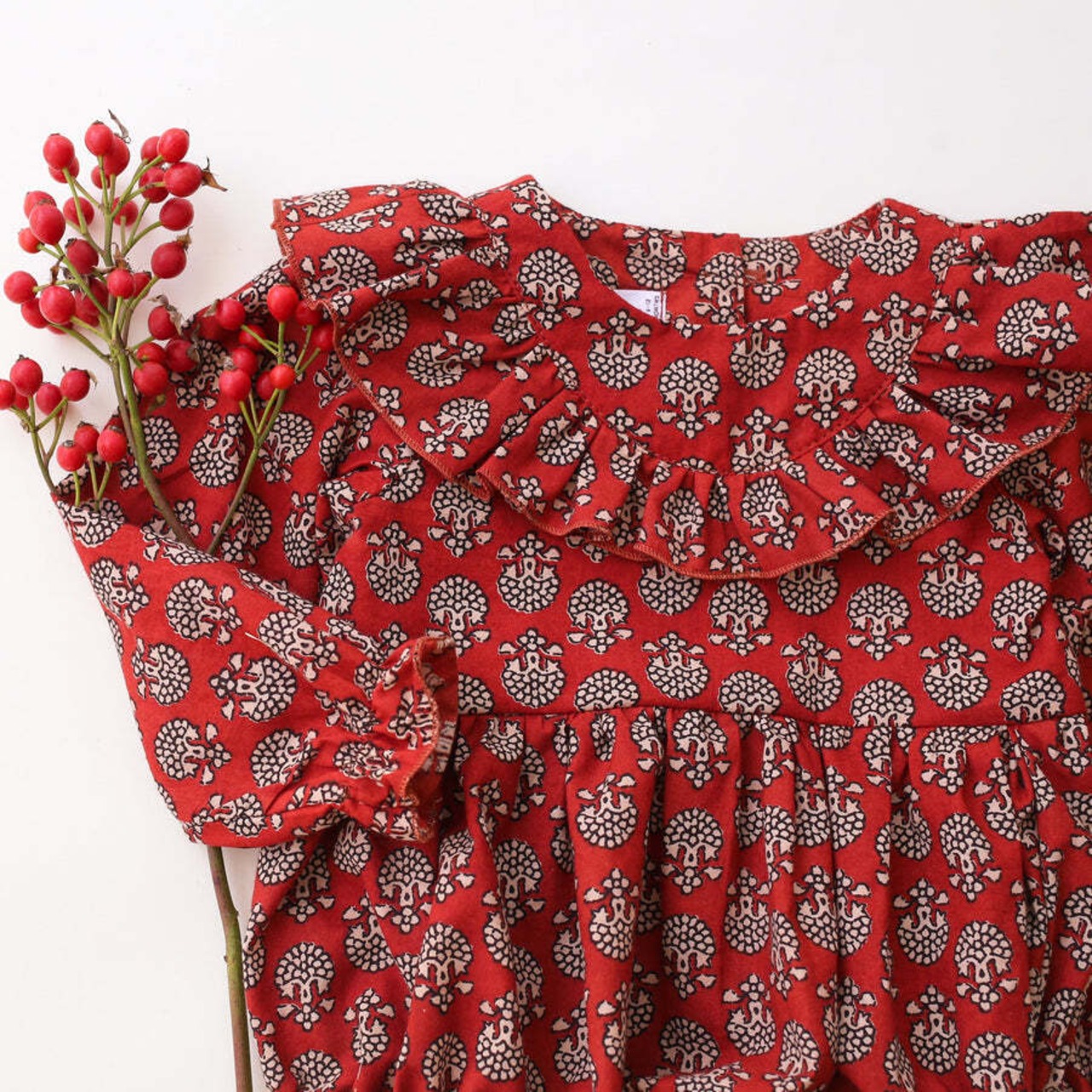 クリスマス限定の「Festive Florals」は、インド・ジャイプールから届いた、錆赤・黒・ベージュで描かれた、レトロでユニークな柄の生地です。