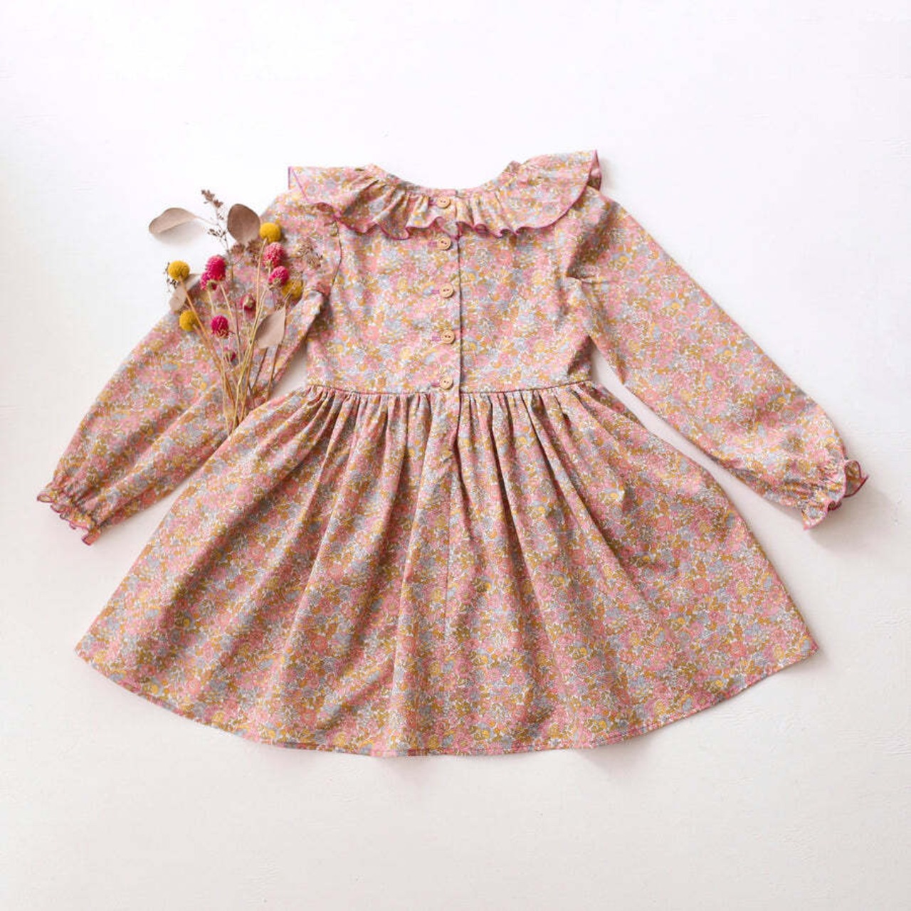 《 予約 》【 Dannie and Lilou × Liberty Print 】Long Sleeve Flounce Collar Dress