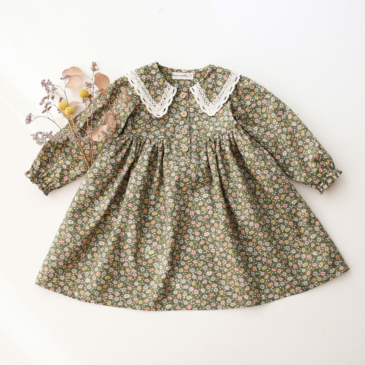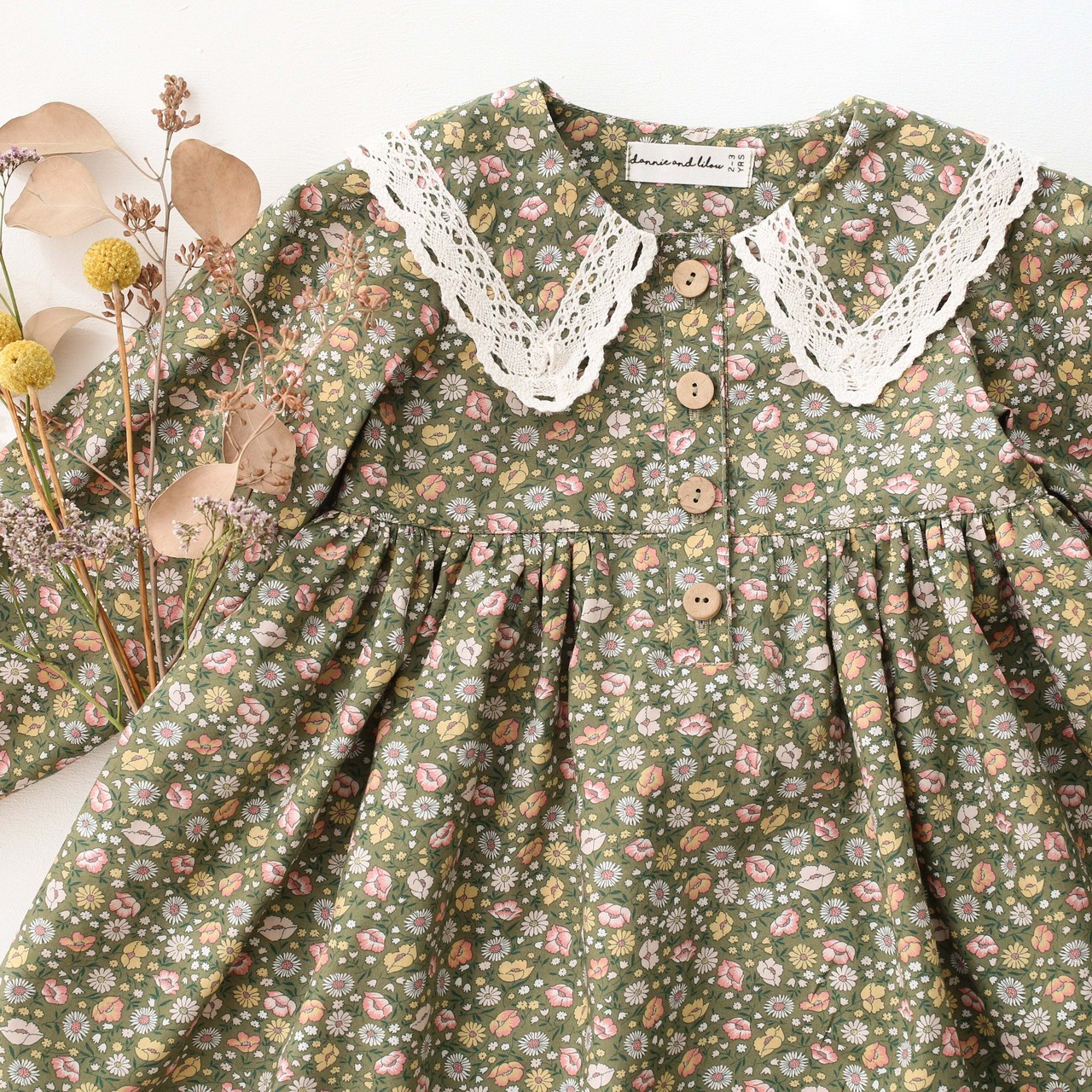 《 予約 》【 Dannie and Lilou × Liberty Print 】Long Sleeve Pointed Collar Dress with Lace