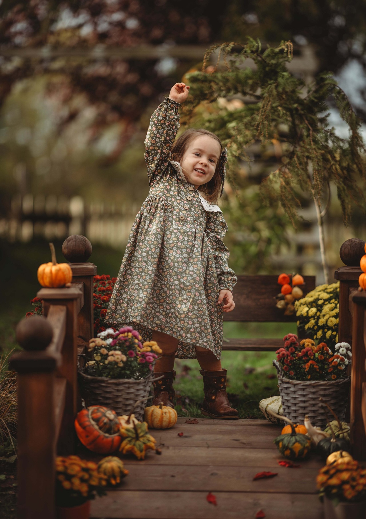 シンプルなギャザースカートで動きやすく、普段のお出かけから特別な日まで幅広く活躍する一着です。