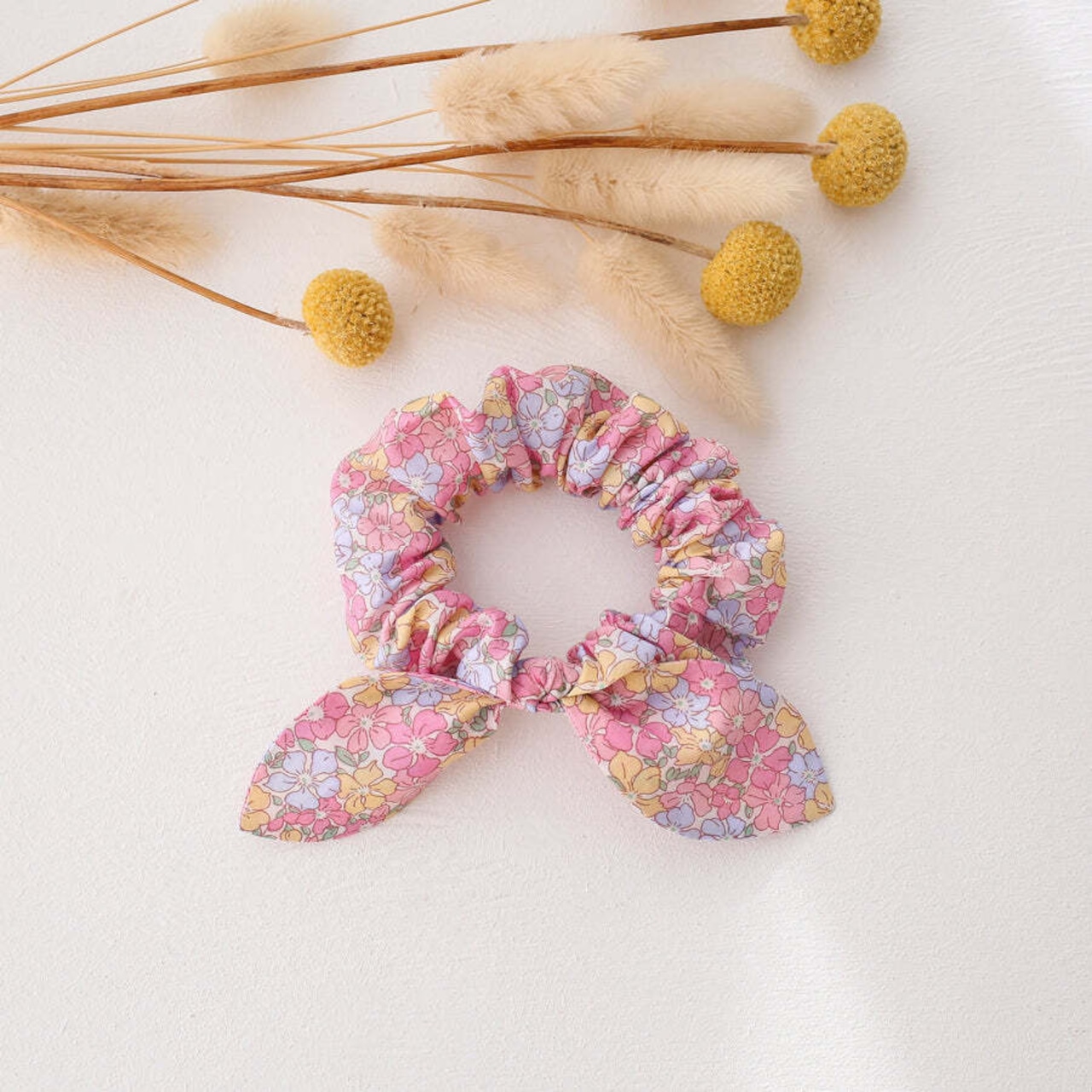 上質な100%コットンのリバティプリント Tana Lawn™ を使用したリボンデザインが可愛いヘアシュシュ。
