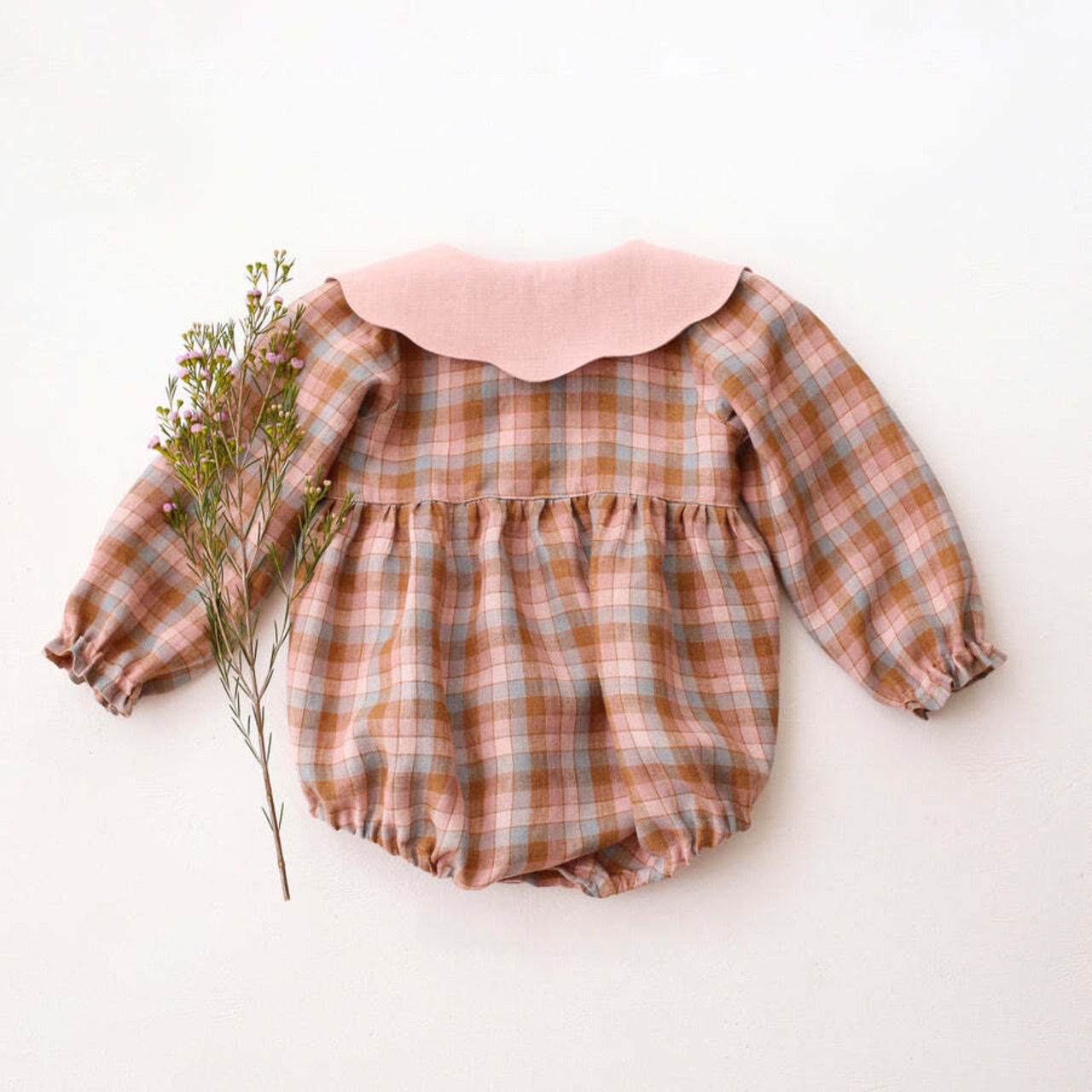 《 予約 》【 Dannie and Lilou 】Long Sleeve Bubble Playsuit with Petal Collar