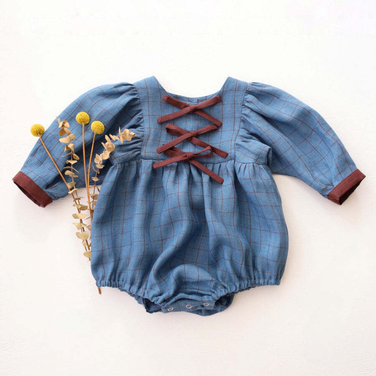 《 予約 》【 Dannie and Lilou 】Puff Sleeve Bow Bubble Playsuit