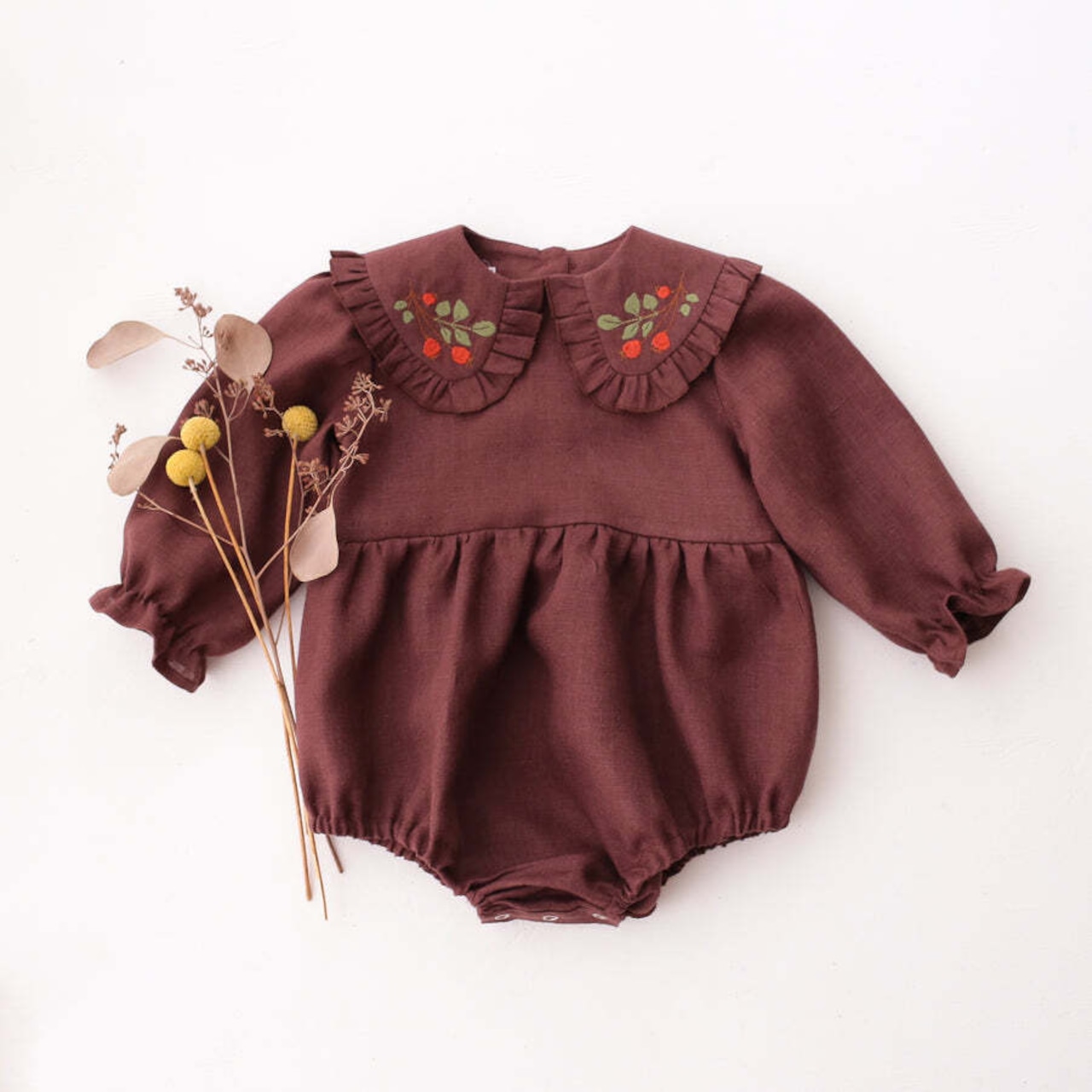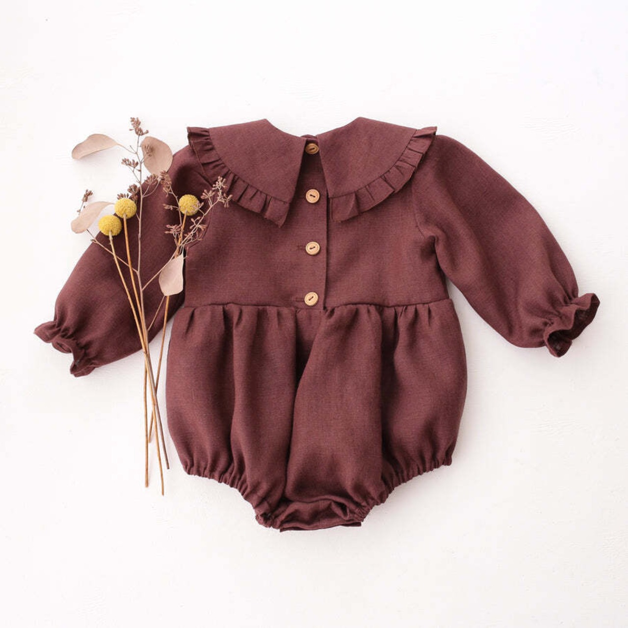フリル襟が可愛らしいスイートなバブルロンパース。