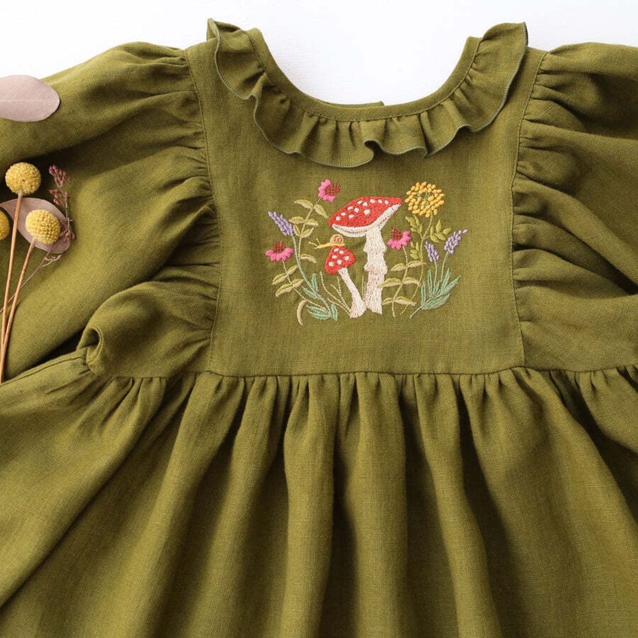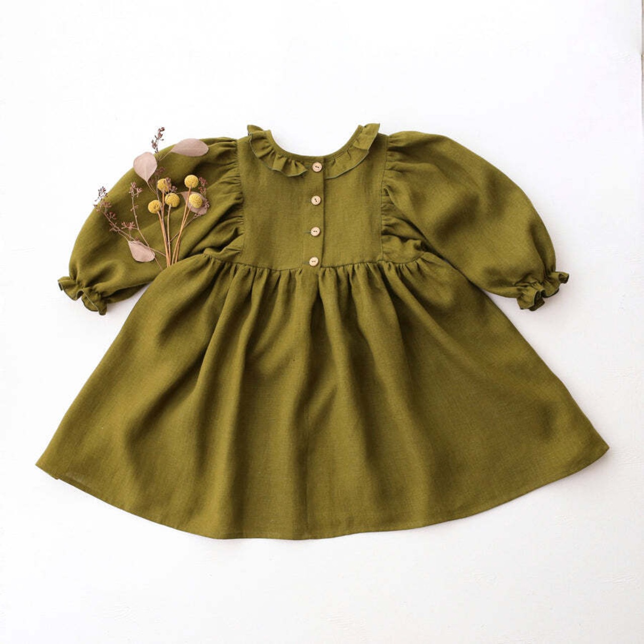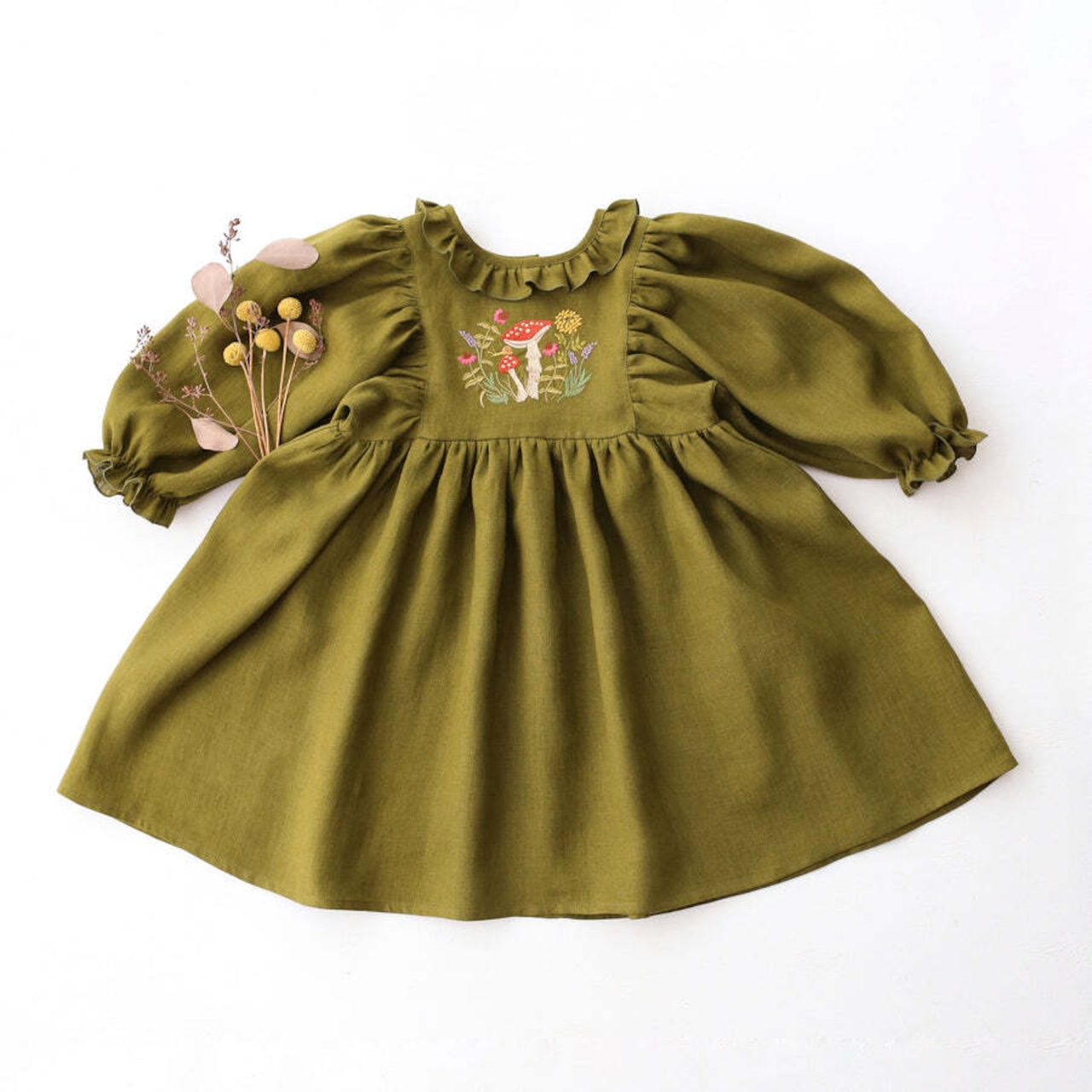 フリル襟とふんわりパフスリーブが可愛らしいワンピース。
