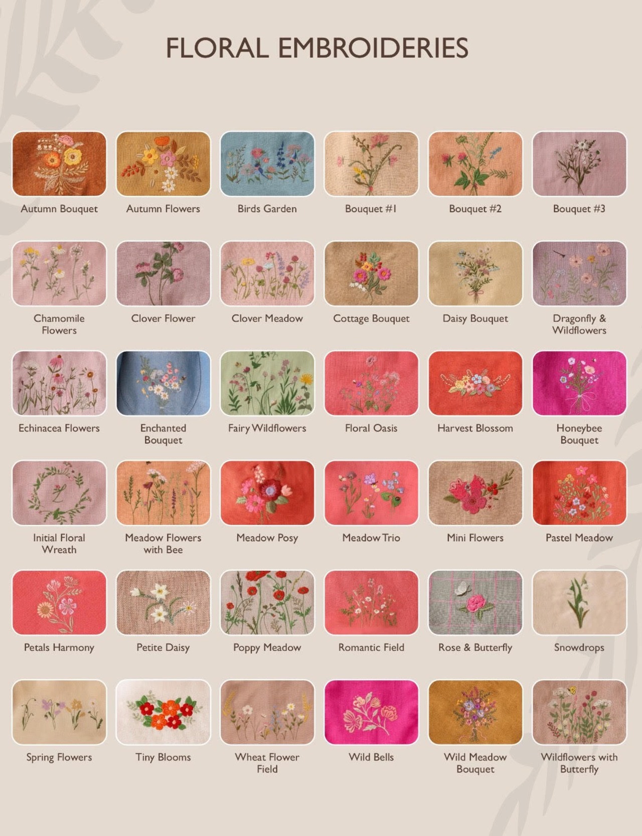 ボディの生地、さらに襟の刺繍はお好きなものを選んでカスタマイズ可能。