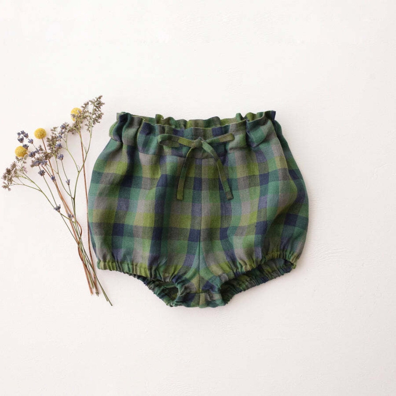 ウエストはゴム入りで履きやすく、可愛らしいバブルショーツ。