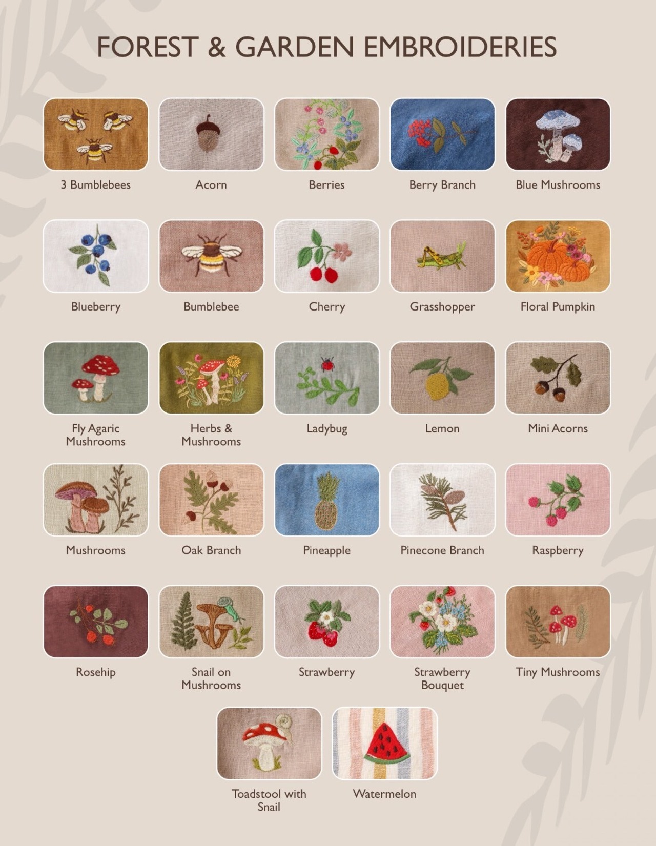 ボディの生地カラーと刺繍を選んでカスタマイズ可能。