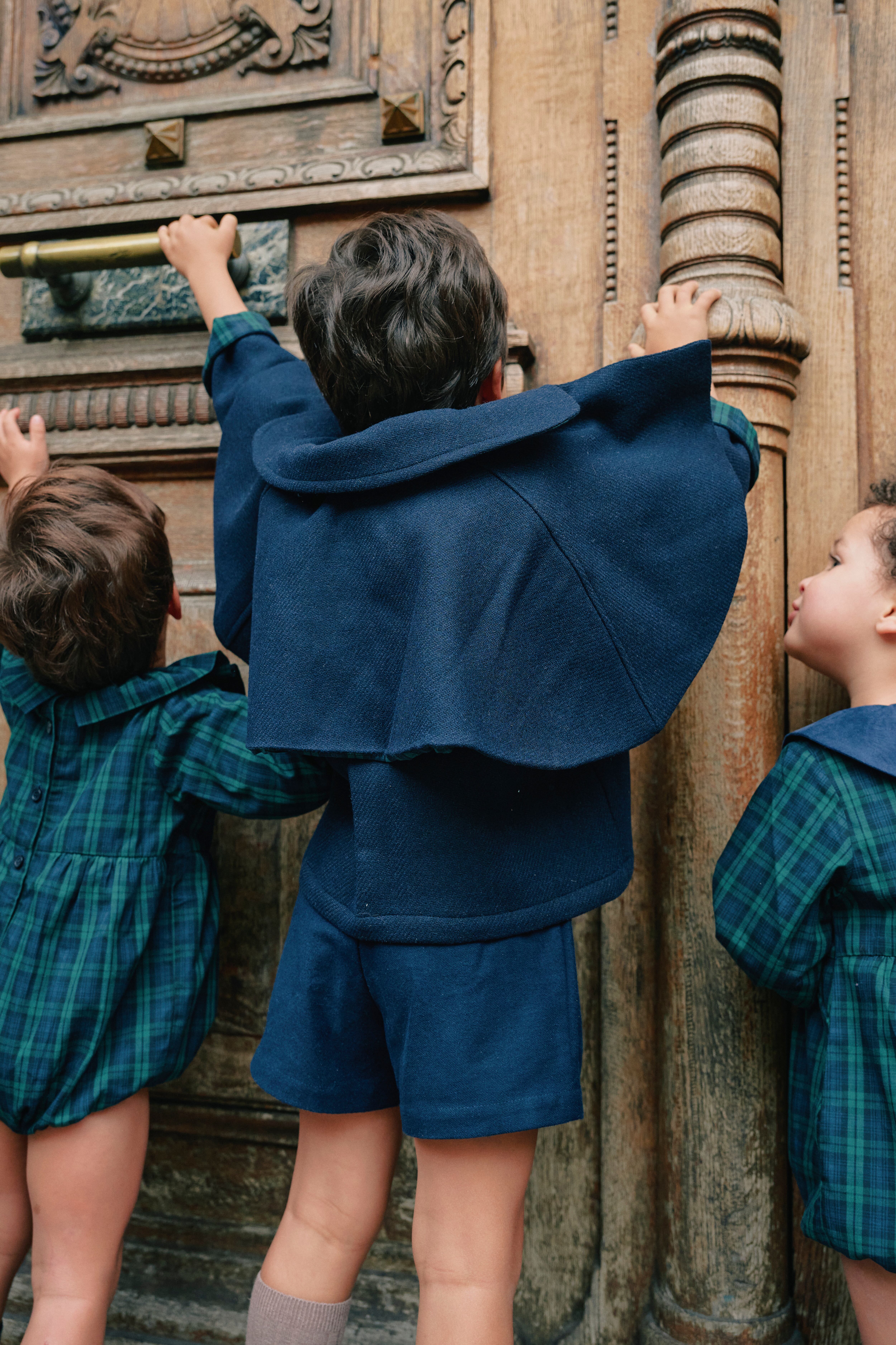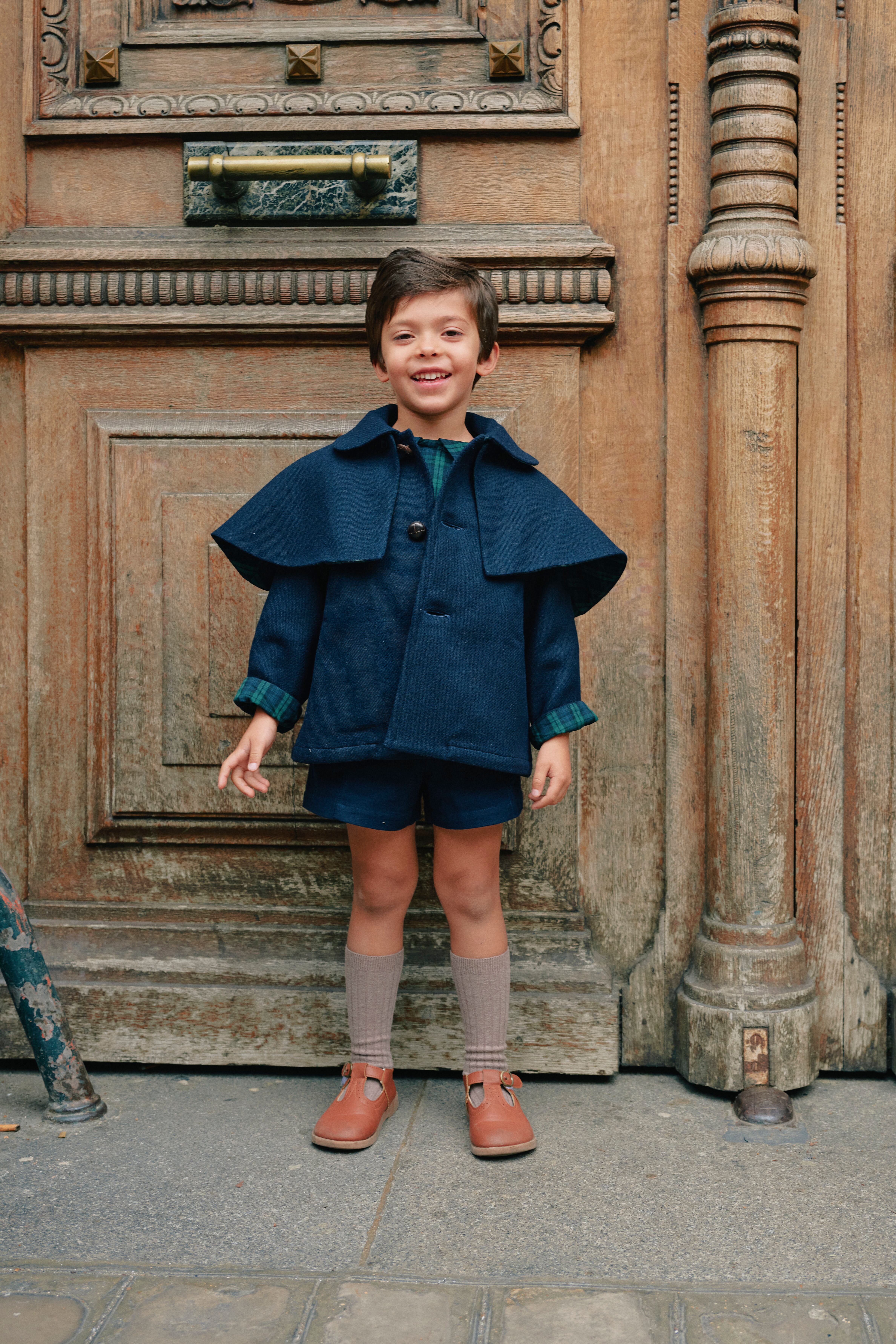 《 予約 》【 Maison Marelle 】Coat AMOVIBLE cape SHERLOCK- Blue mostly wool(5y-8y)