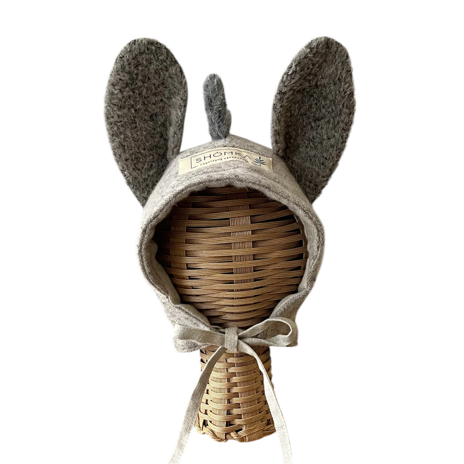 大きなお耳とたてがみがとってもキュートなAW25新作のドンキーボンネット。