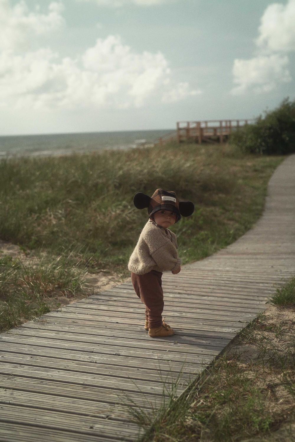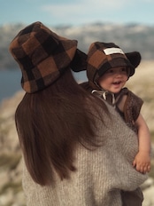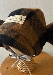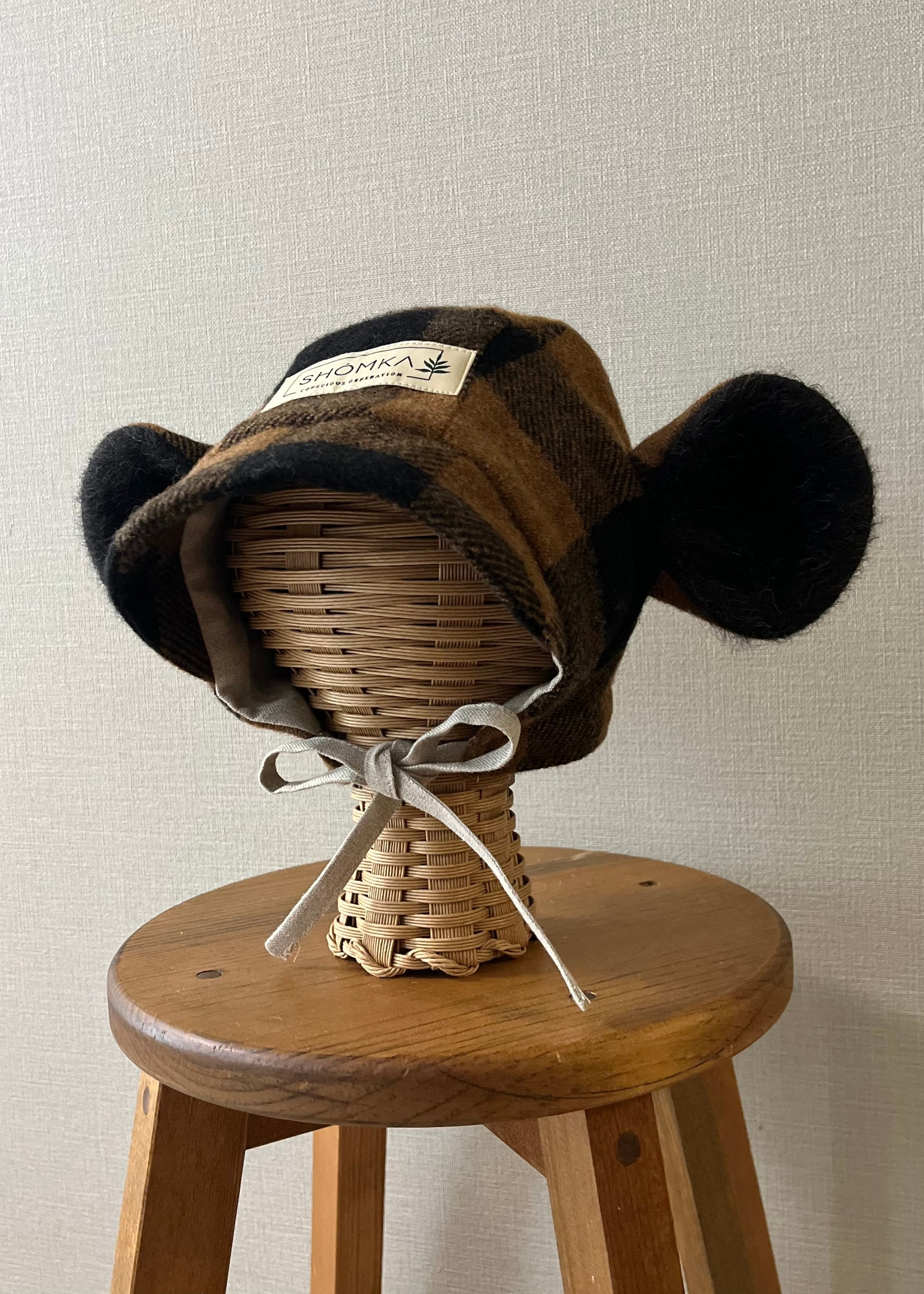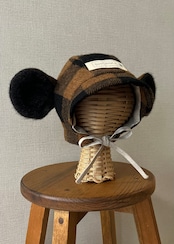 model : WOOL / Espresso gingham monkey bonnet