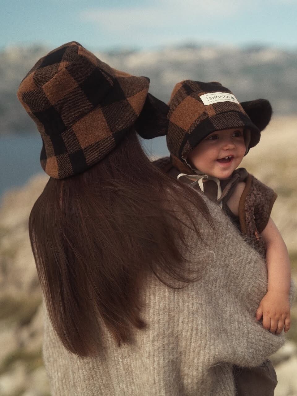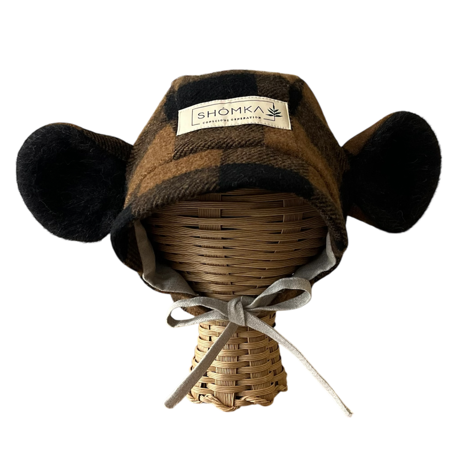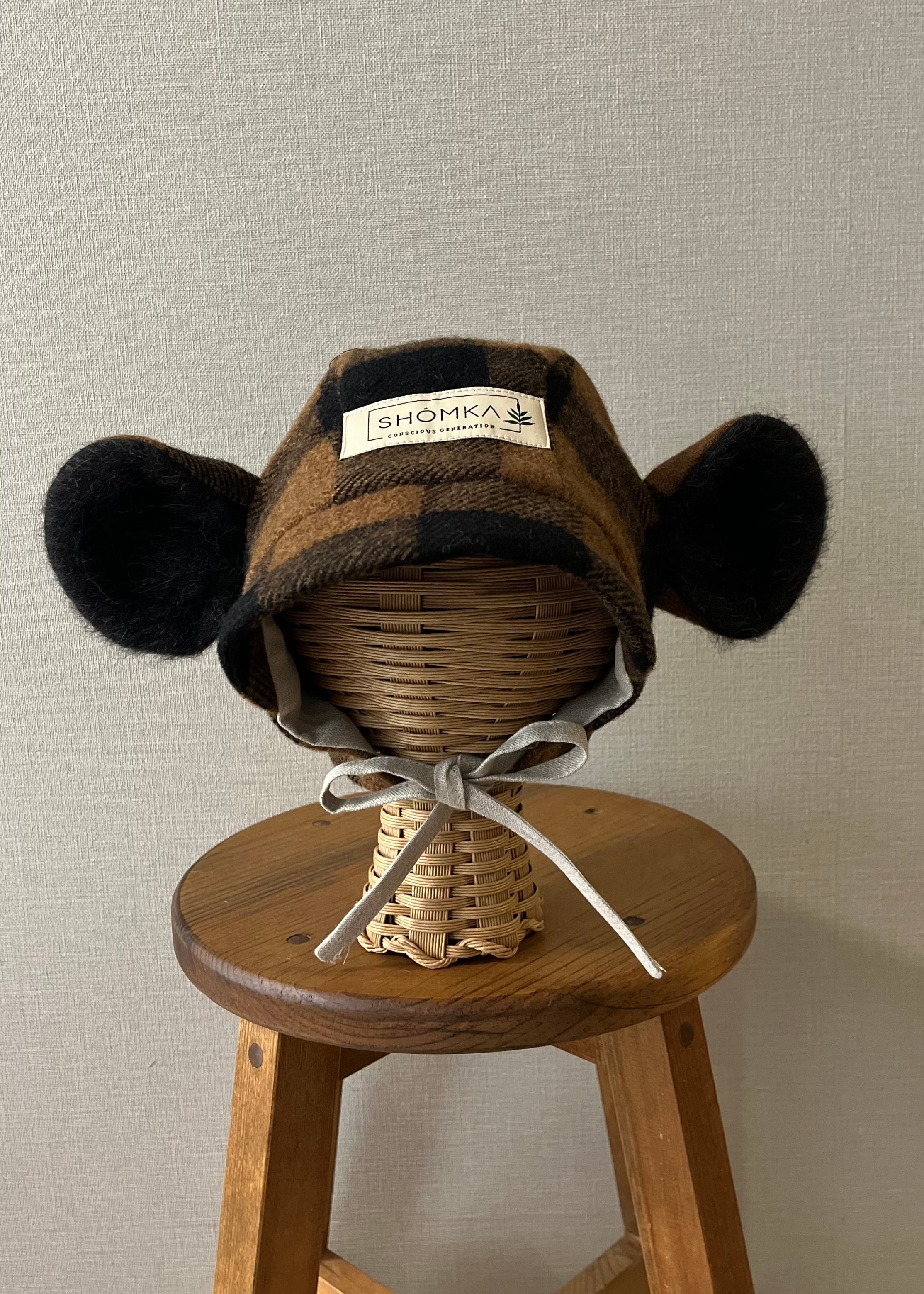 【 SHÓMKA 】Espresso gingham monkey bonnet