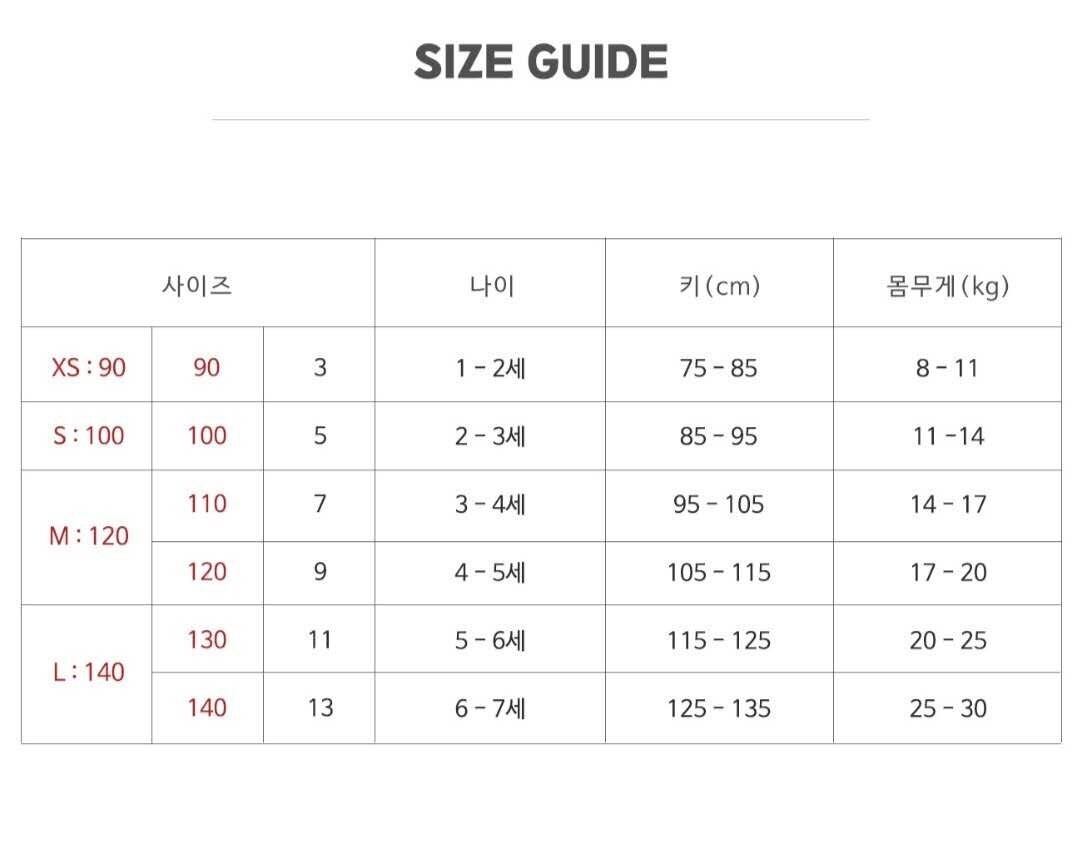 100 : 85-95cm / 11-14kg / 2-3y