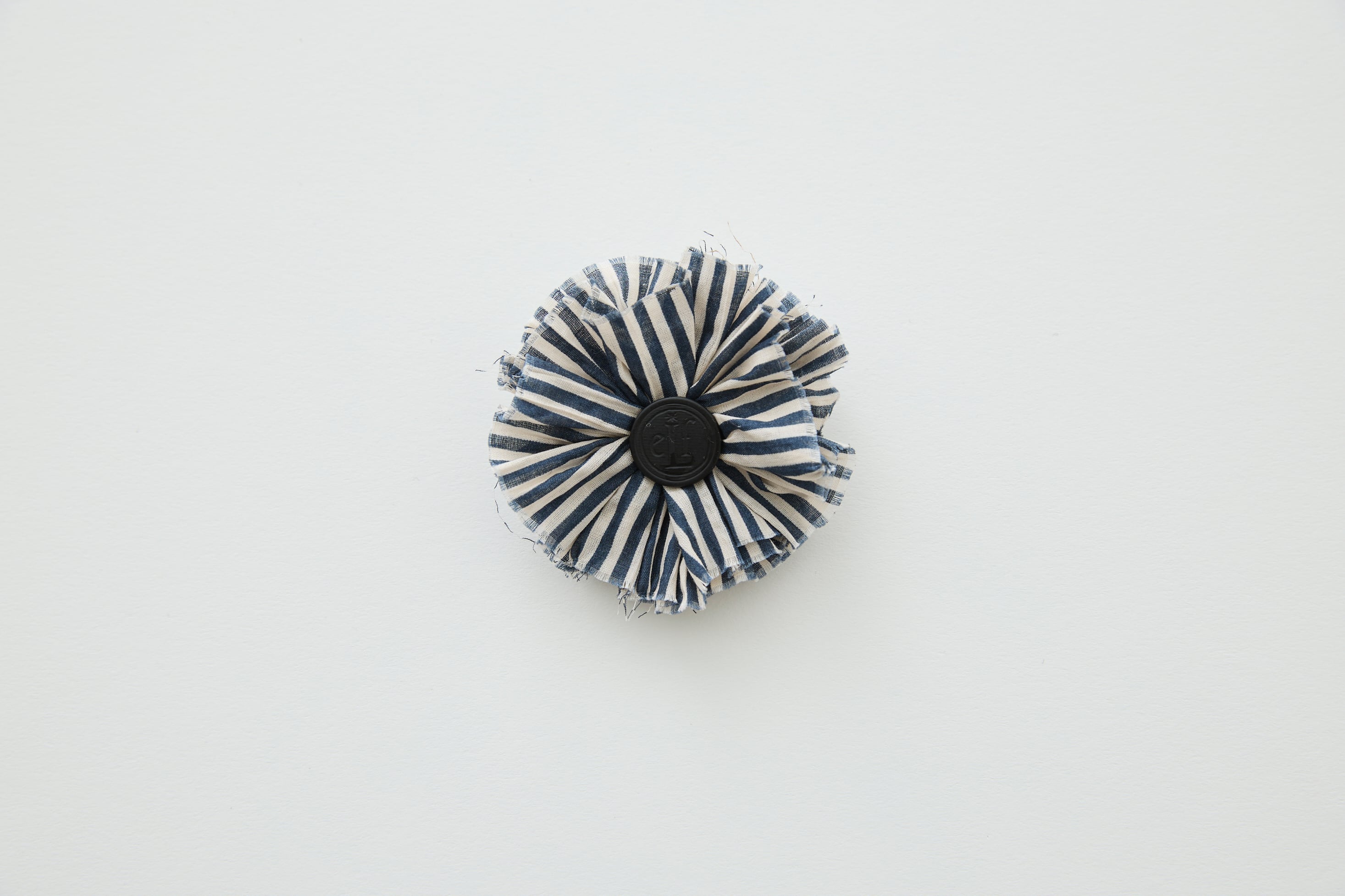 ラクルウェーブストライプの⽣地で、⼤切なセレモニーの⼥の⼦に添えるお花のコサージュを、ひとつひとつ丁寧に⼿作りしました。