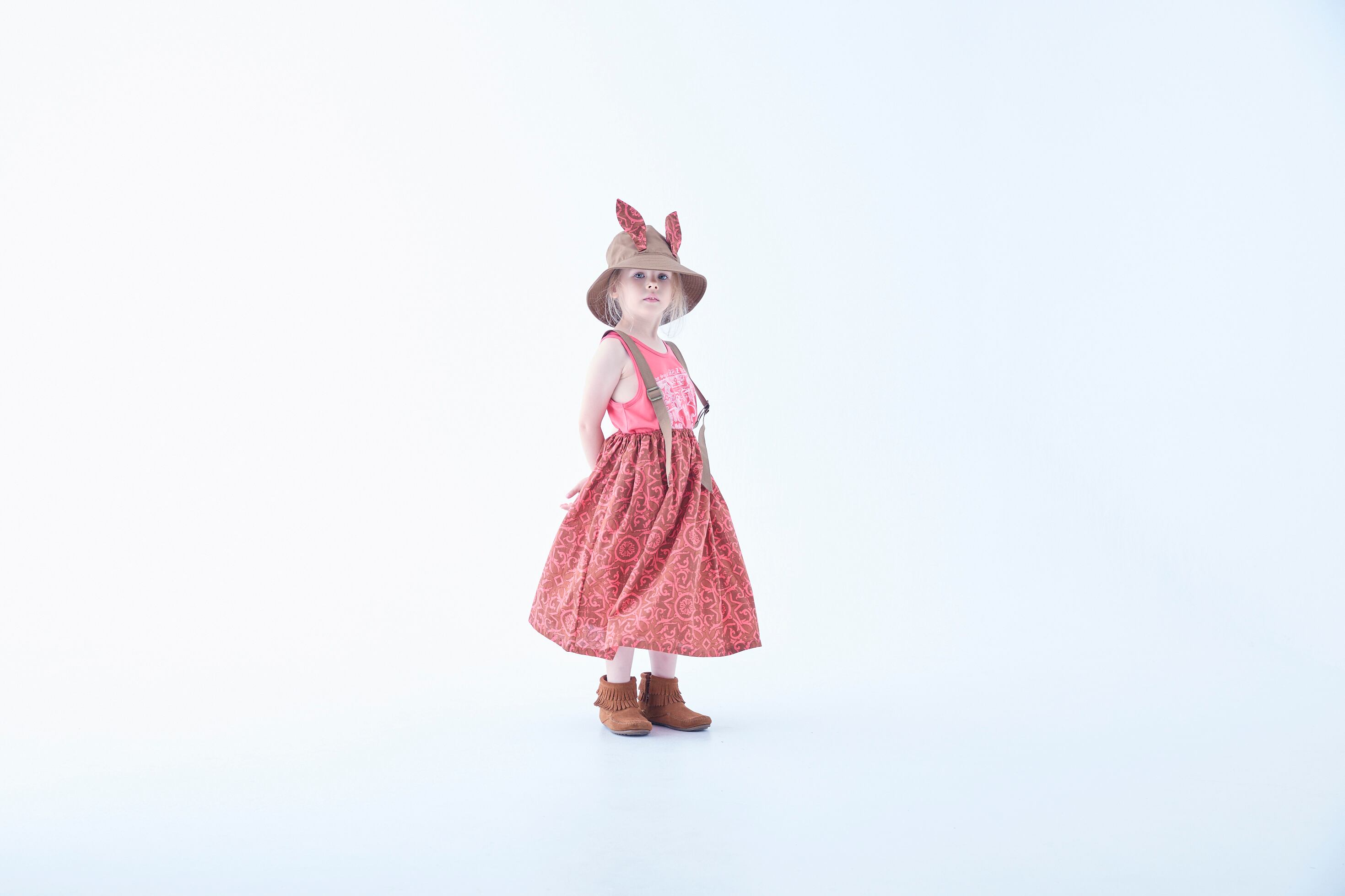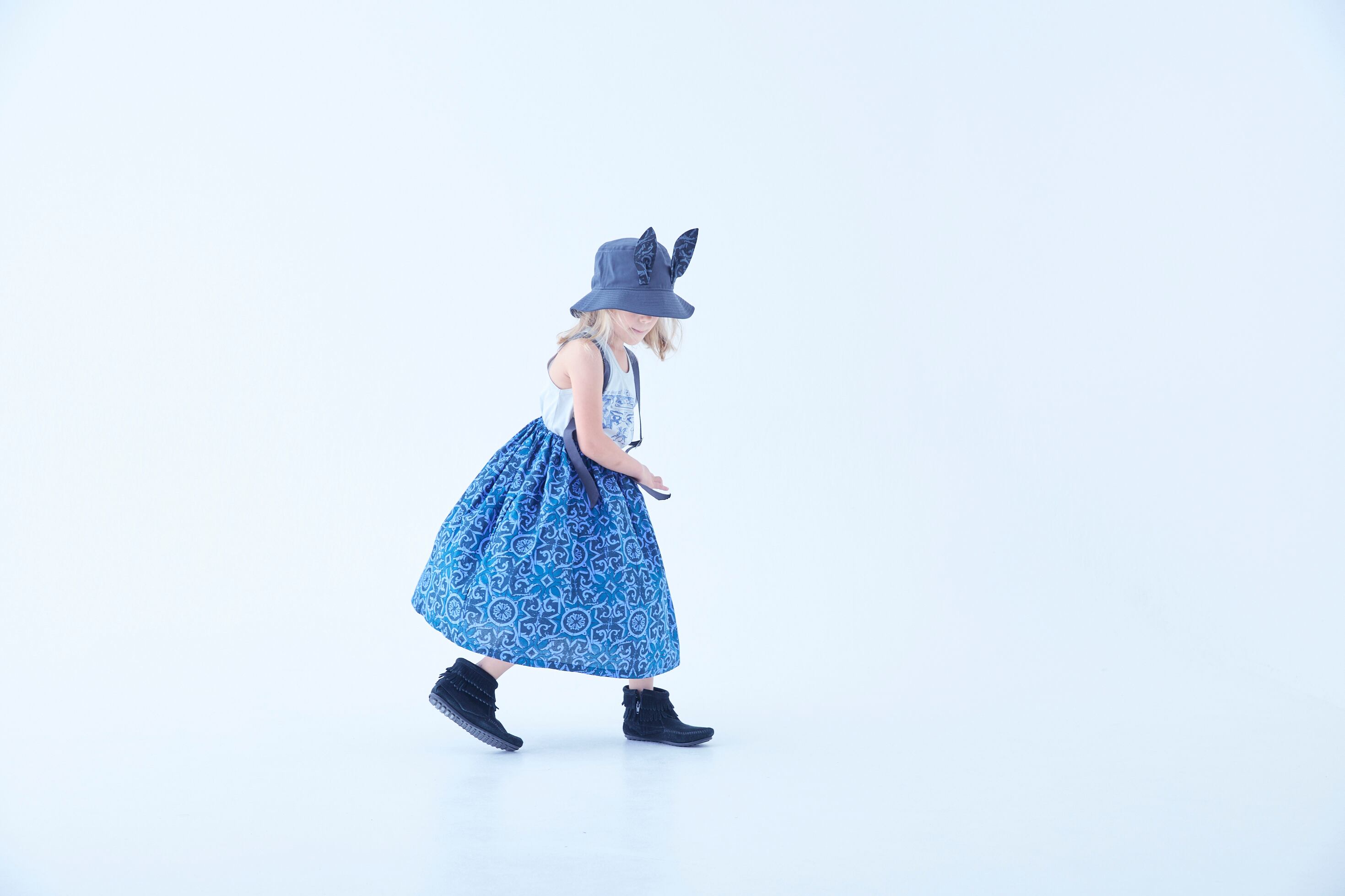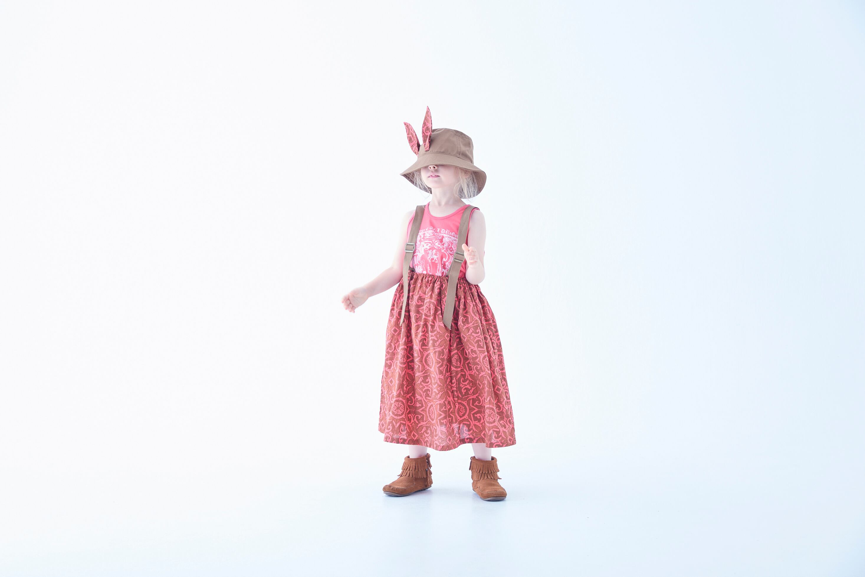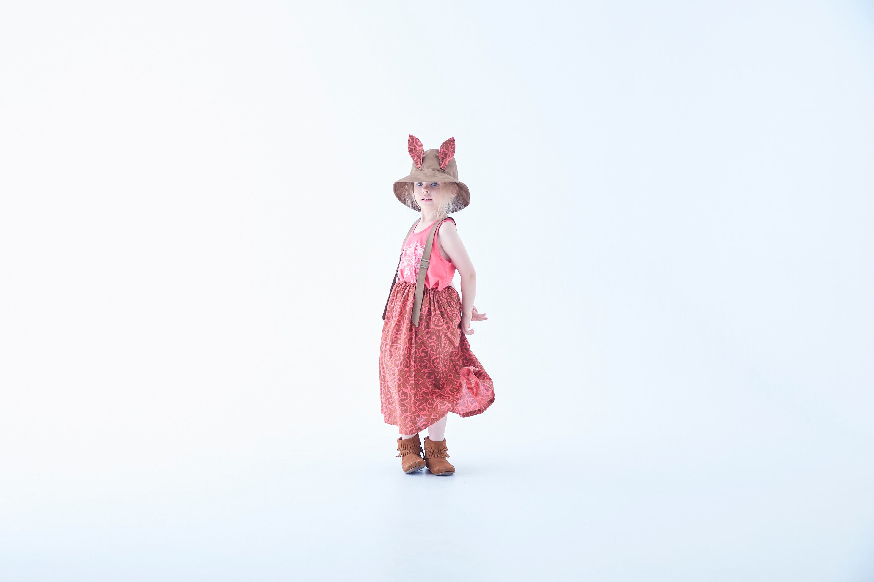 コットンツイルのバケットハットに妖精王国の獣たちをイメージした⽿を付けたビーストバケットハットや、タンクトップとコーディネートを楽しんで。