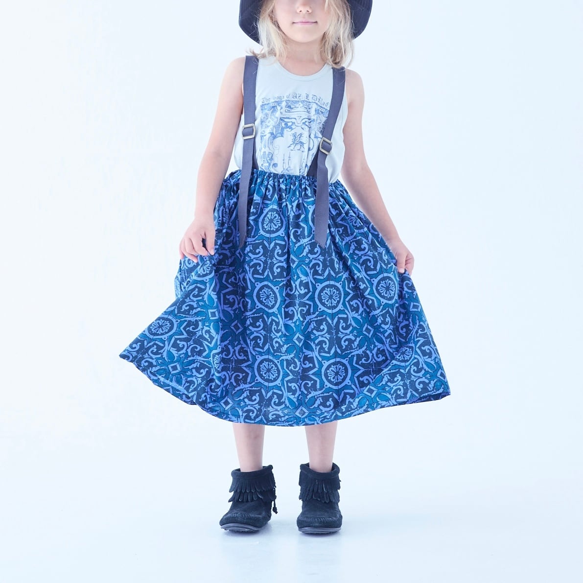 《 予約 》【 eLfinFolk 】AZULEJOS Suspenders Skirt