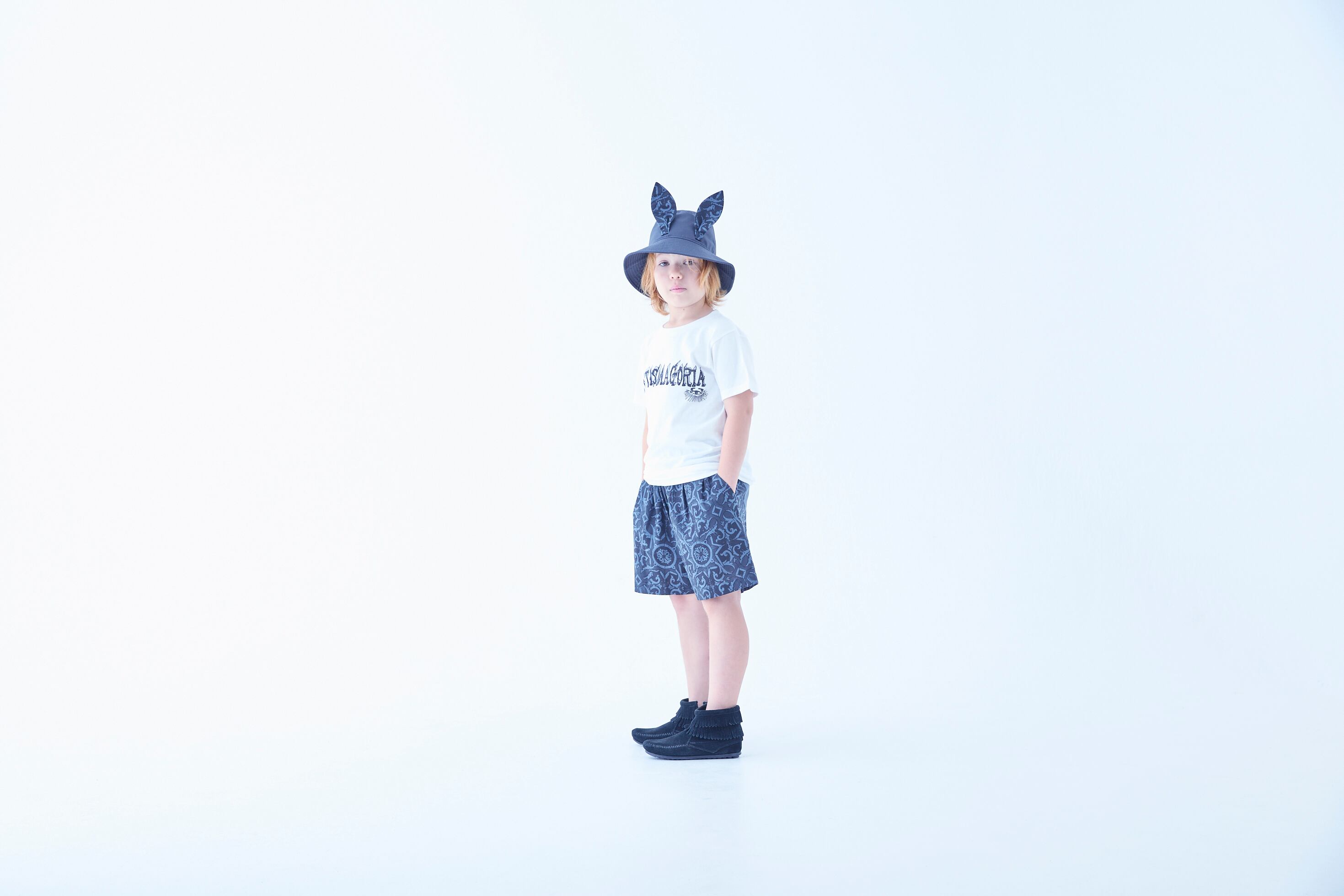 コットンツイルのバケットハットに妖精王国の獣たちをイメージした⽿を付けたビーストバケットハットは、eLfinFolkらしい毎年⼈気のアイテム。