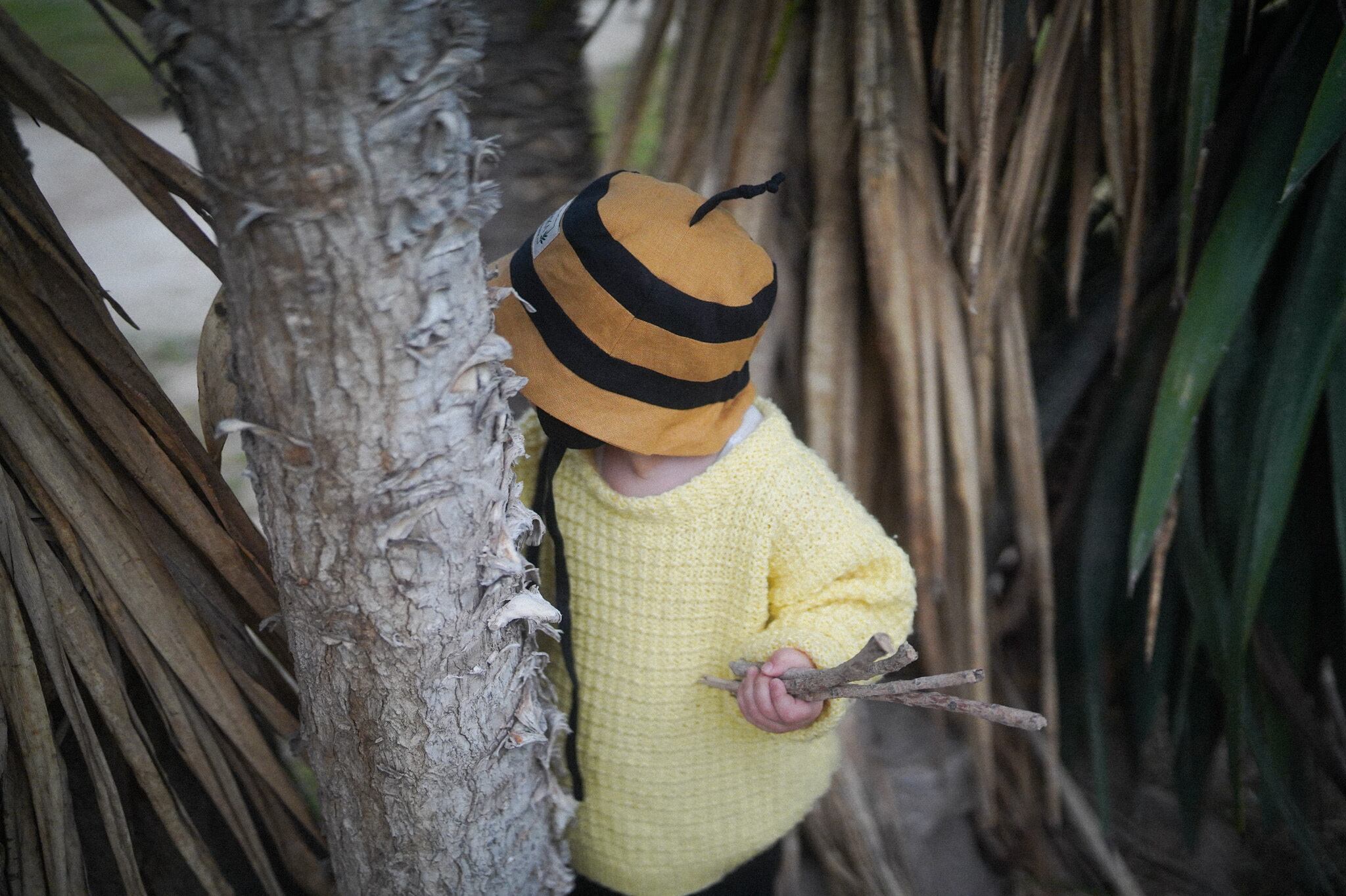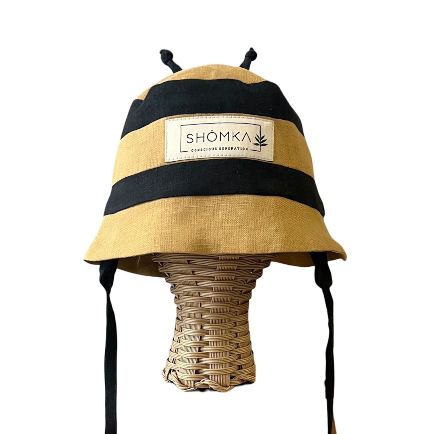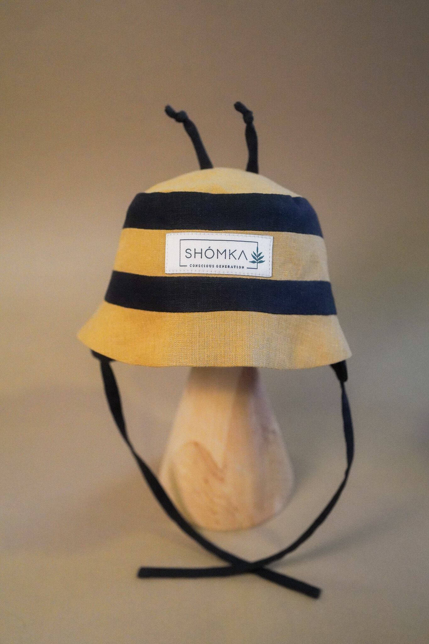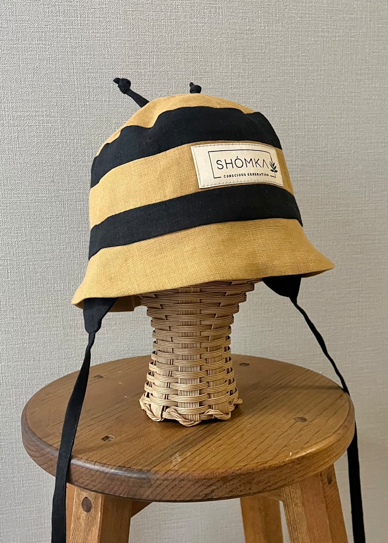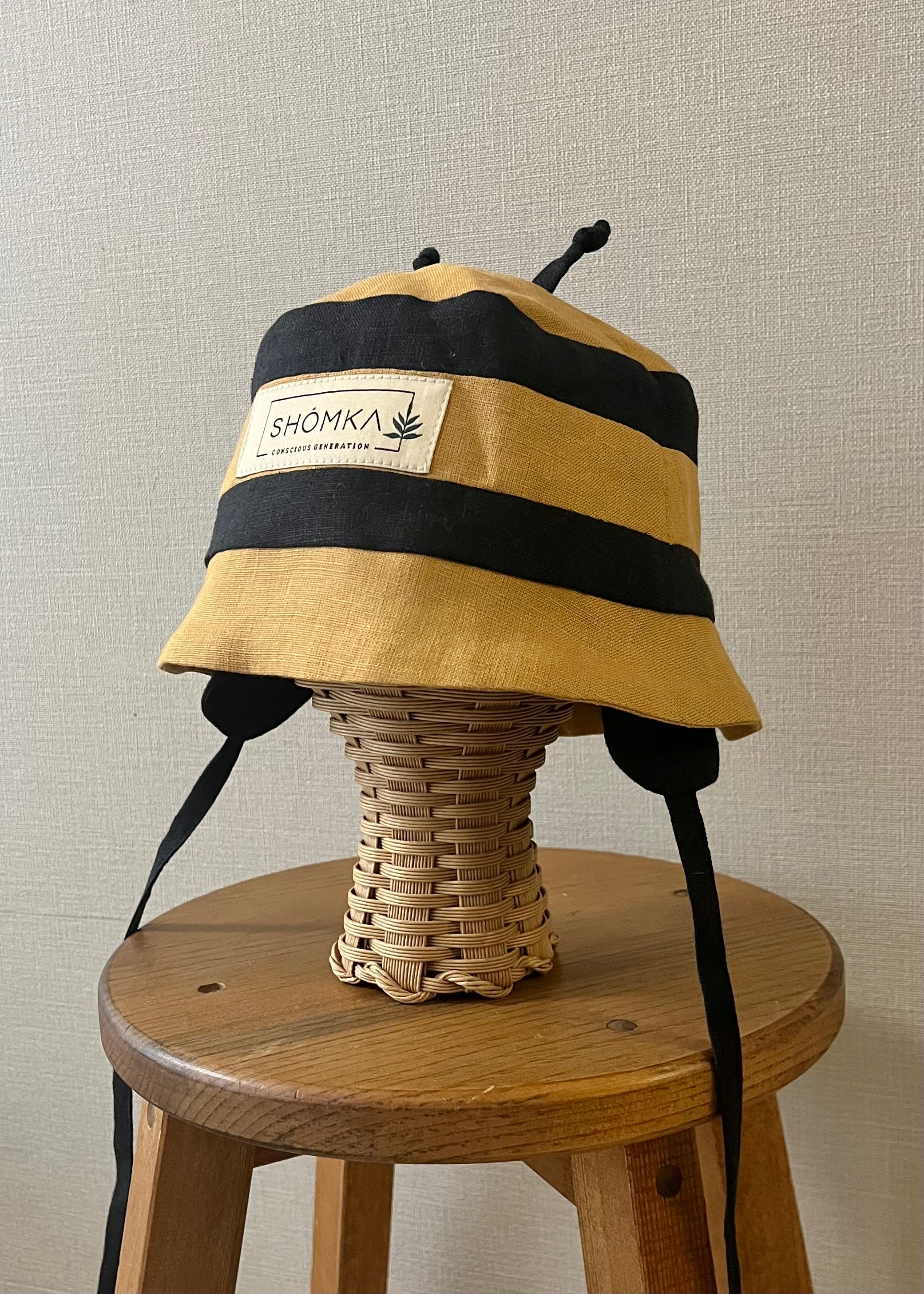 2026ssシーズンよりリネンに新たに登場した、Bumblebee(マルハナバチ(丸花蜂))のハットは、HoneyとNightの生地で表現されたストライプ模様や、ぴょんと立った触覚がとってもキュート!