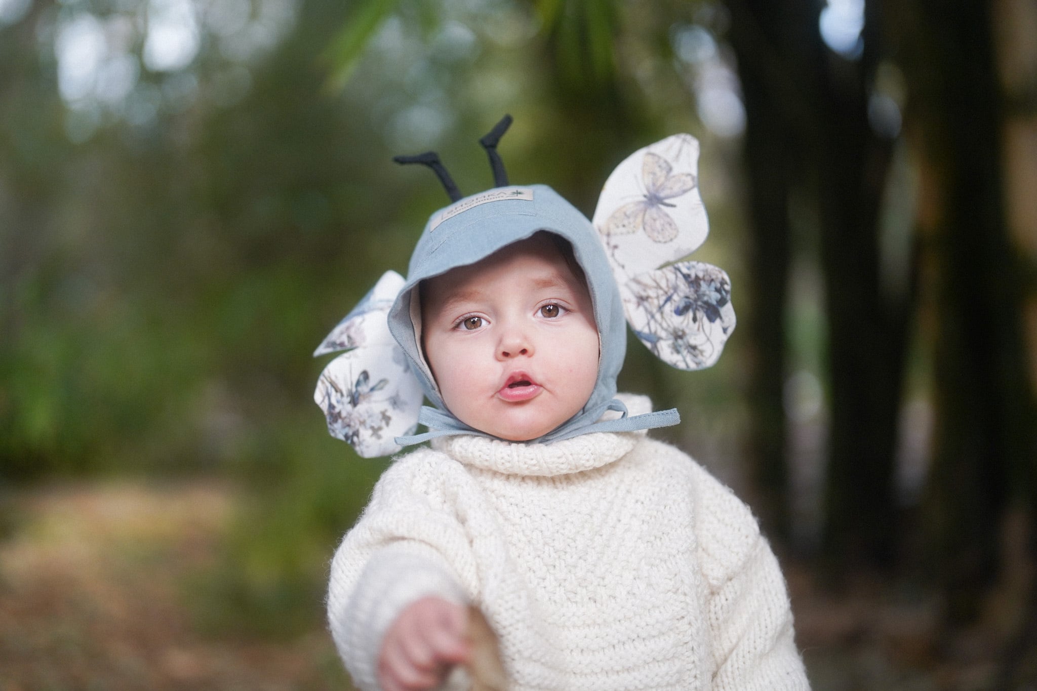 2026ssシーズンより新たに登場した、Butterfly(蝶々)のボンネットは、インパクト大の大きな羽に、ぴょんと立った触覚がとってもキュート!