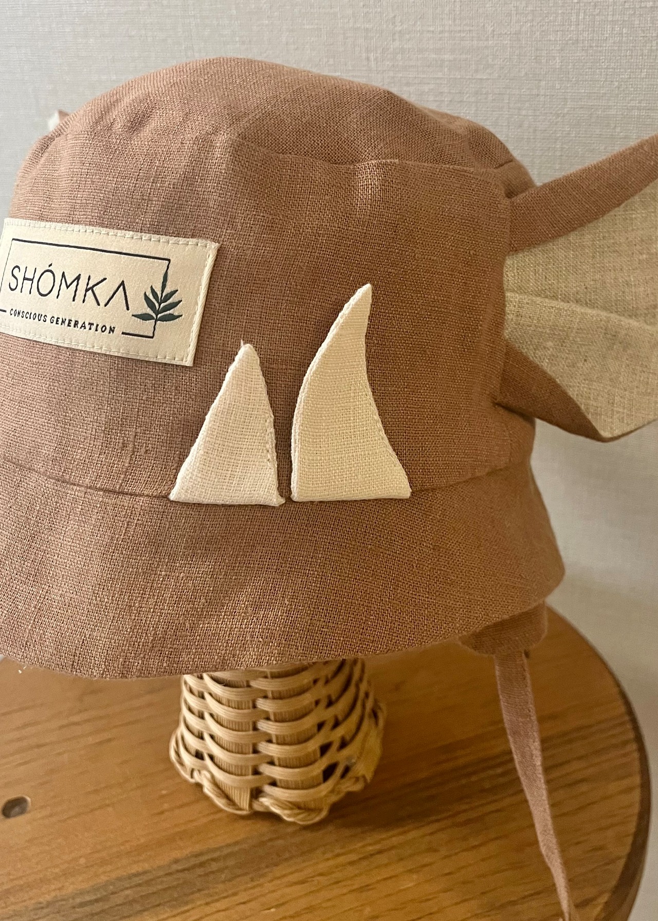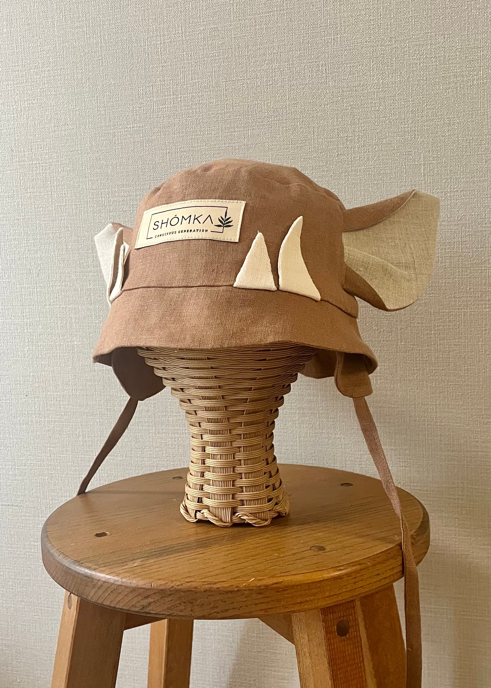 2026ssシーズンよりリネンに新たに登場した、Wild boar(イノシシ)のハットは、大きなとんがりお耳と4本の牙が特徴の可愛いモデル。