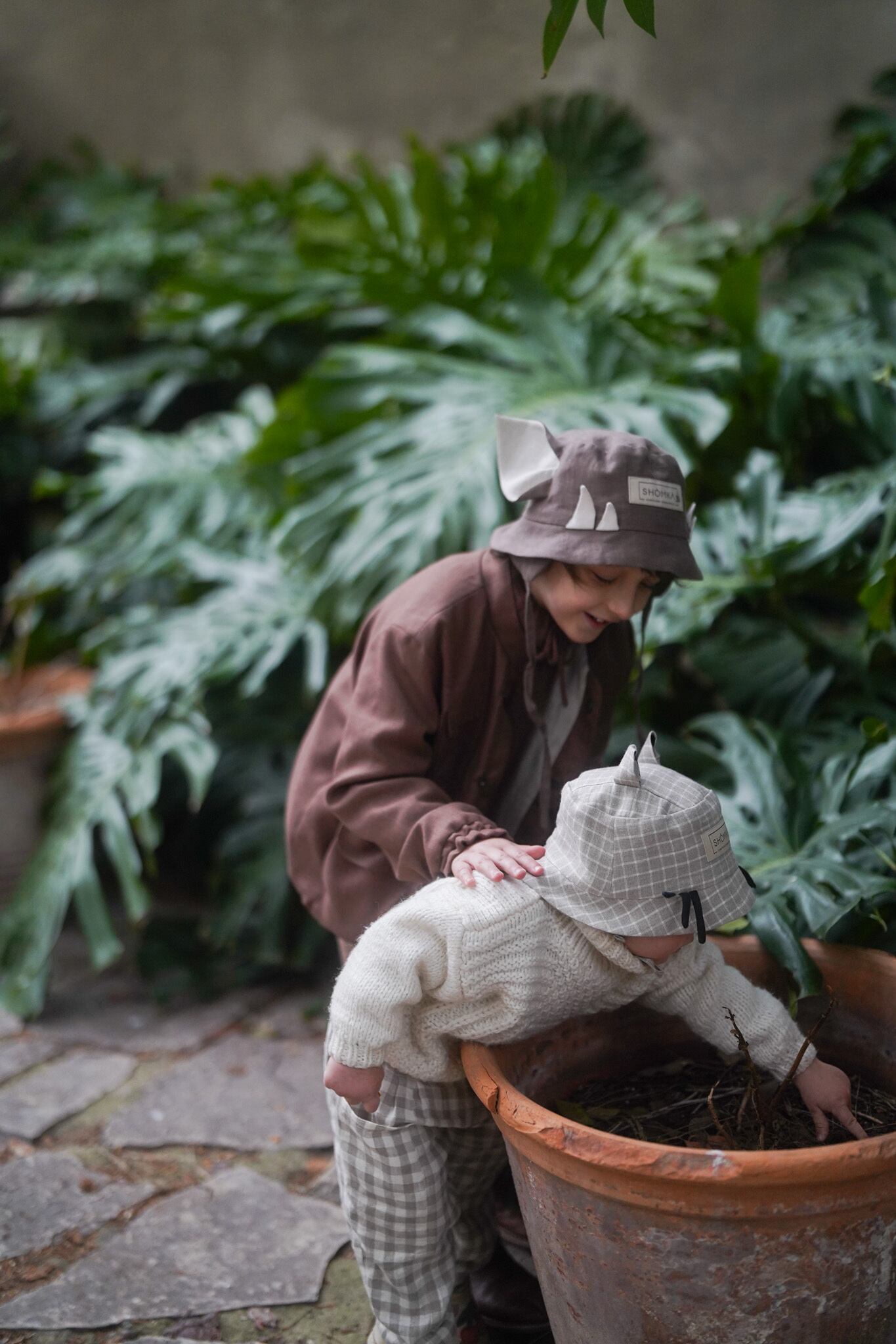 SHÓMKAの代名詞とも言える動物や植物をモチーフにしたボンネットやハットは一年を通して大人気!