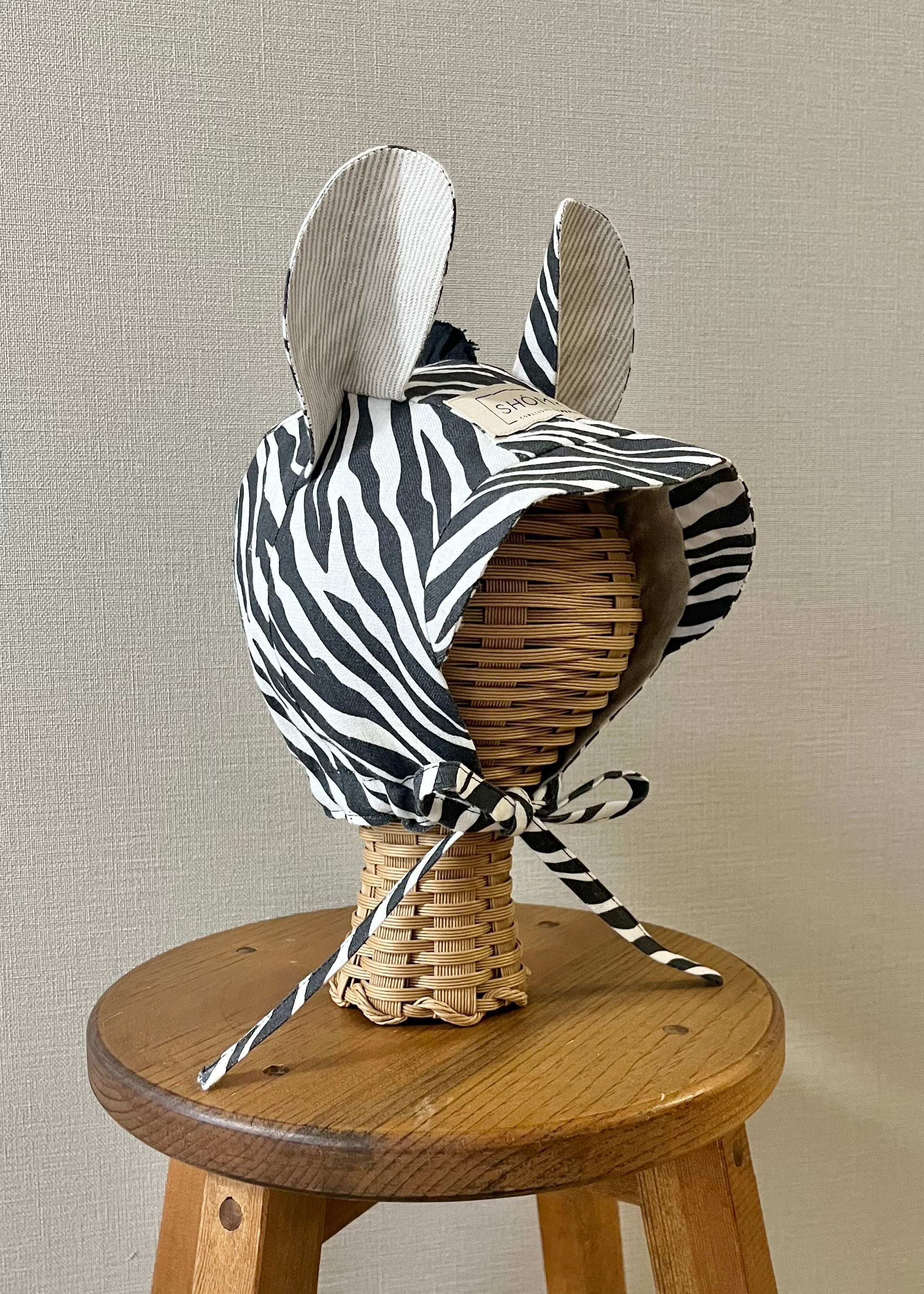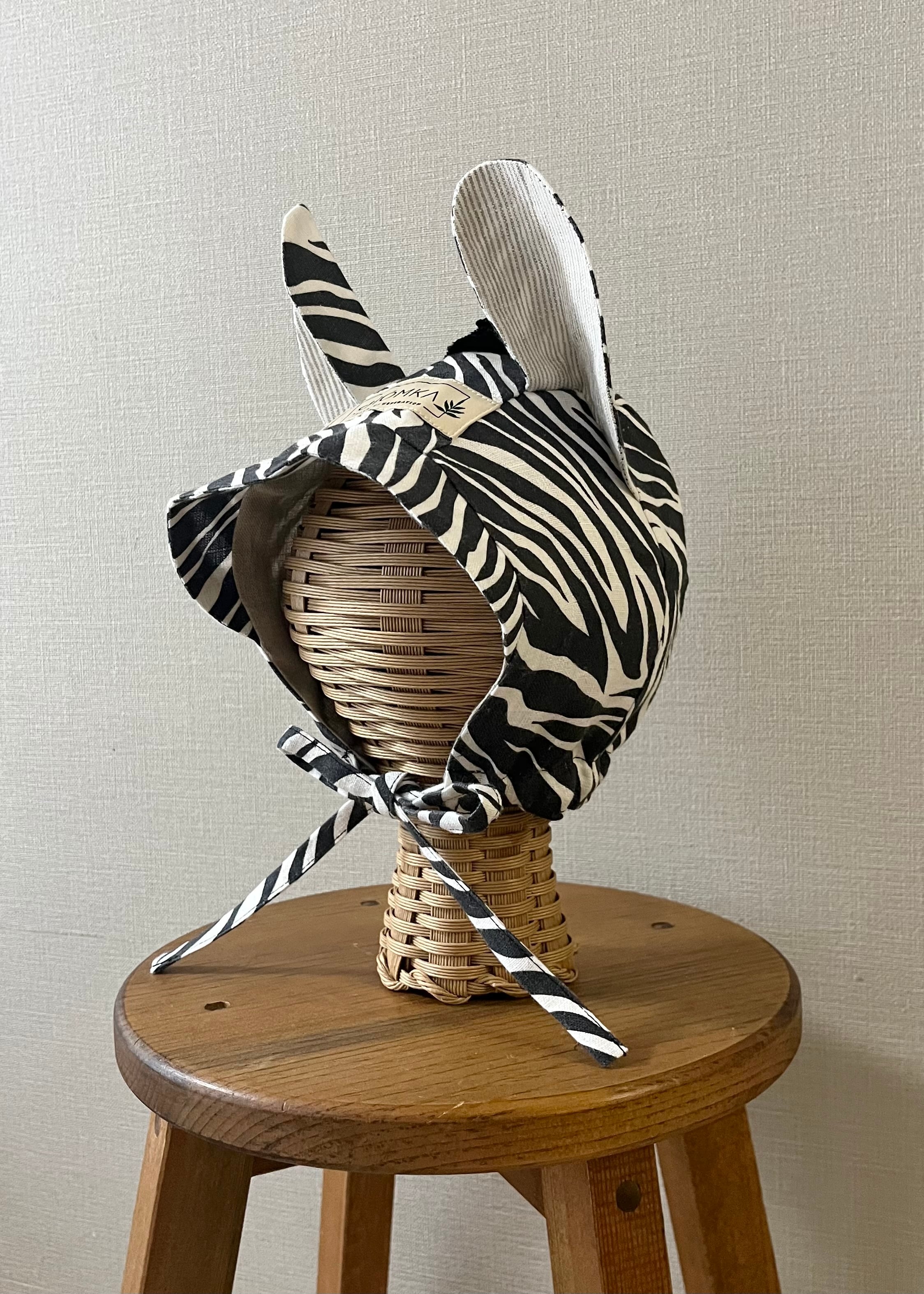 2026ssシーズンより新たに登場した、Zebra(シマウマ)のボンネットは、大胆なゼブラ柄と丸みのある大きなお耳、黒いたてがみがスタイリッシュなモデル。