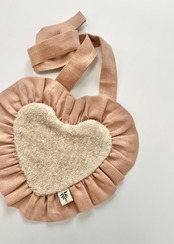 ※ビブ本体は無地のグレー、リネン生地のフリル付ハート形タイプとなります