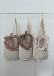 ※ビブ本体は無地のグレー、リネン生地のフリル付ハート形タイプとなります