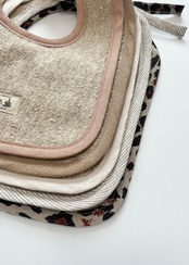 Basic bibsは、スクエア型にリネン生地で縁取りされたシンプルなビブ。