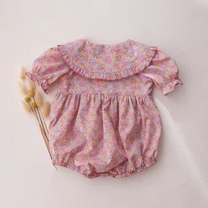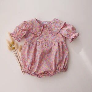 《 予約 》【 Dannie and Lilou × Liberty Print 】Short Sleeve Frilled Collar Bubble Playsuit