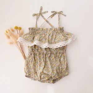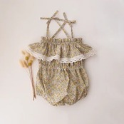《 予約 》【 Dannie and Lilou × Liberty Print 】Tie Straps & Elastic Waist Bubble Playsuit with Lace