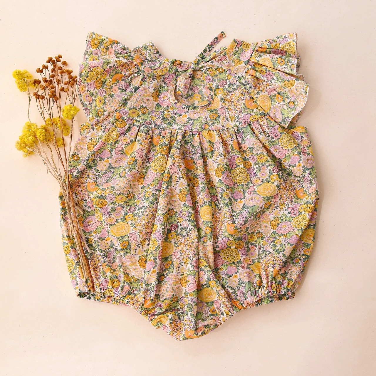 《 予約 》【 Dannie and Lilou × Liberty Print 】Flutter Sleeve Tie Back Bubble Playsuit