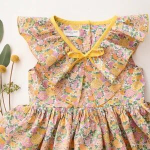 《 予約 》【 Dannie and Lilou × Liberty Print 】Flounce Collar Dress with Contrast Bow