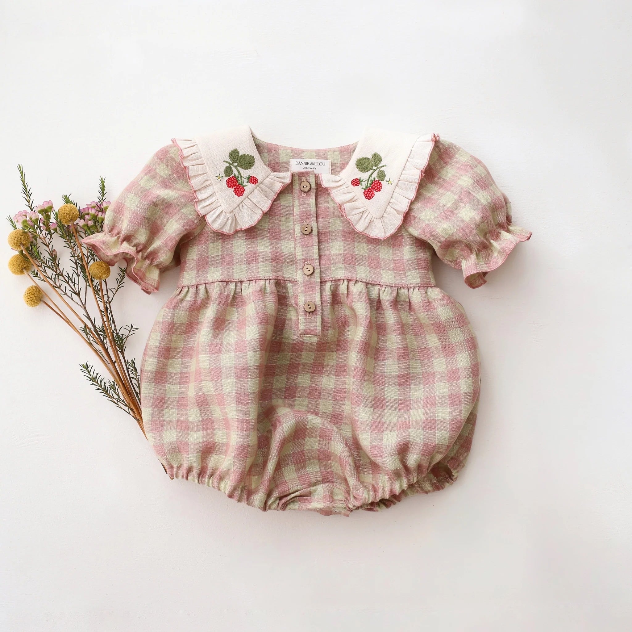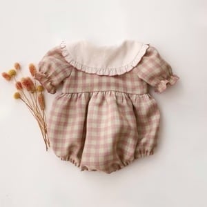 《 予約 》【 Dannie and Lilou 】Short Sleeve Bubble Playsuit with Frilled Collar
