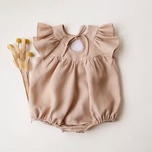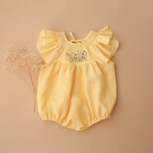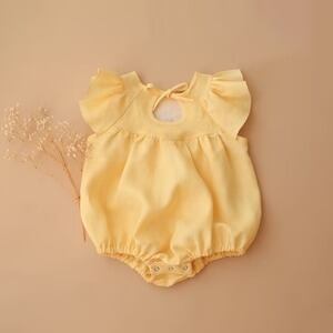 《 予約 》【 Dannie and Lilou 】Flutter Sleeve Tie Back Bubble Playsuit