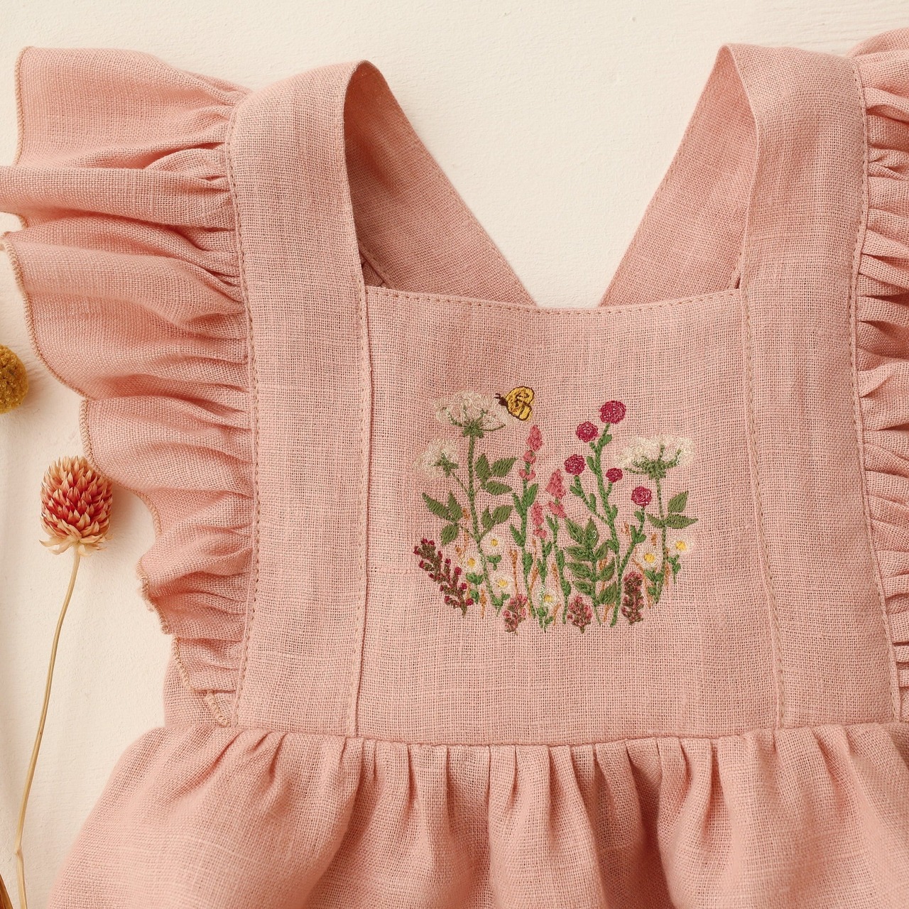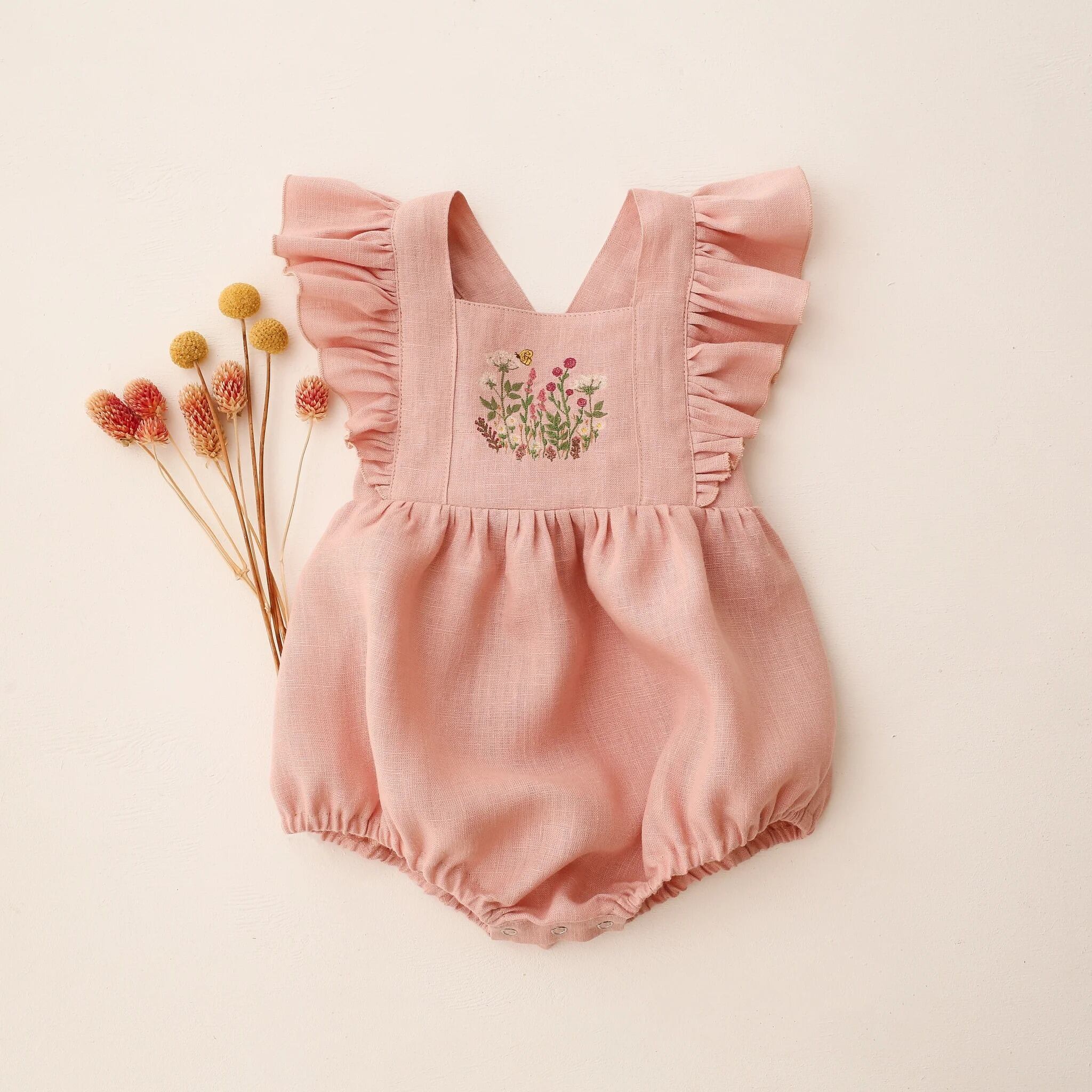 ボディのリネン生地と胸元の刺繍をお選びいただき、自由にカスタマイズが可能です。