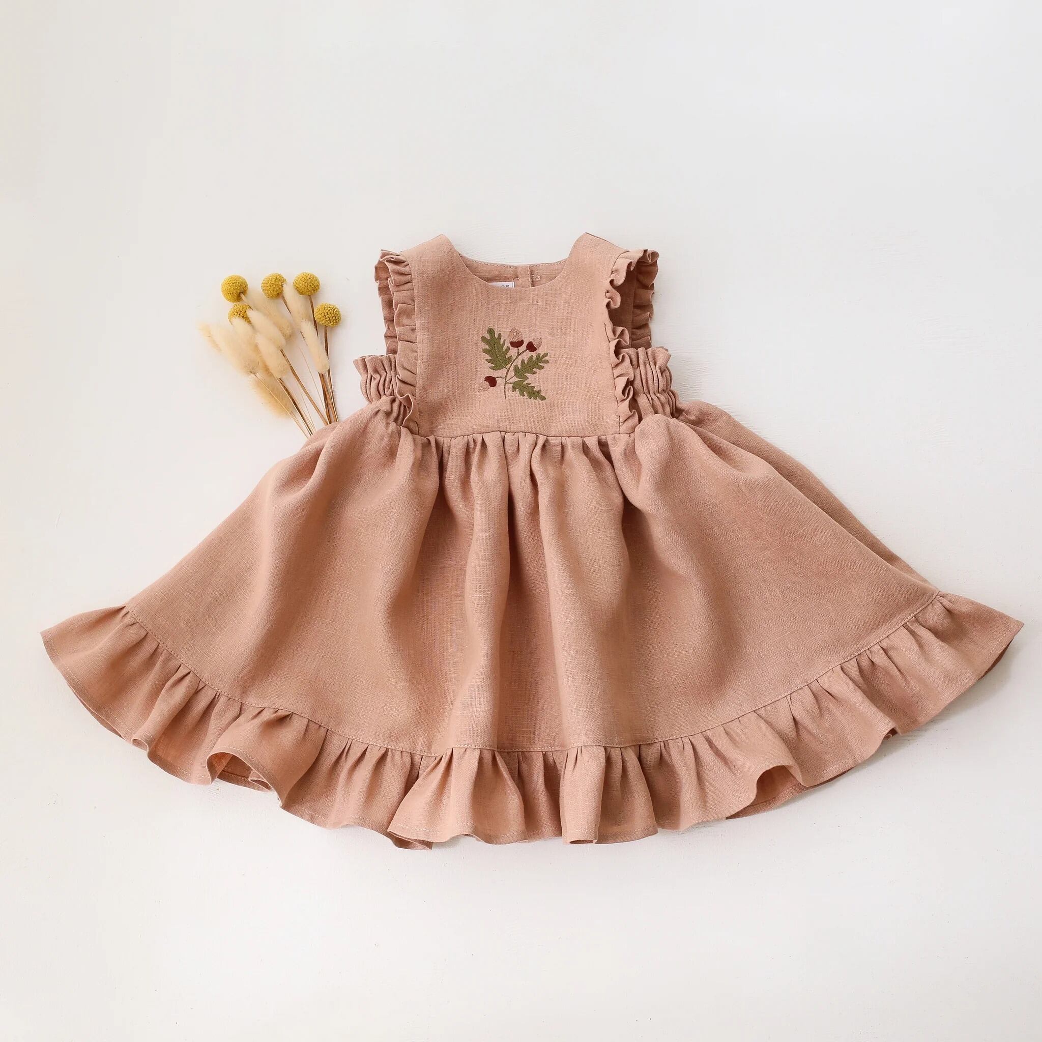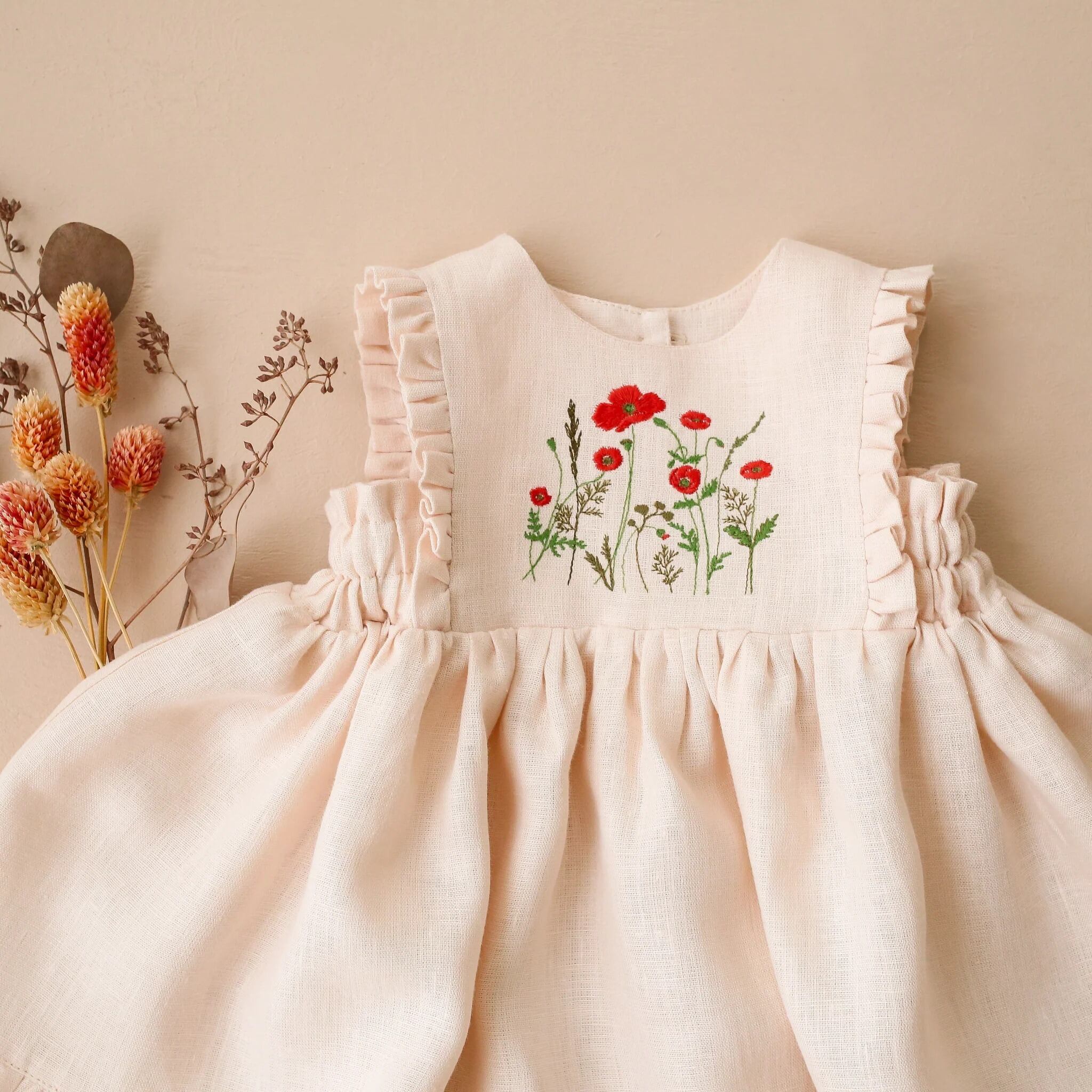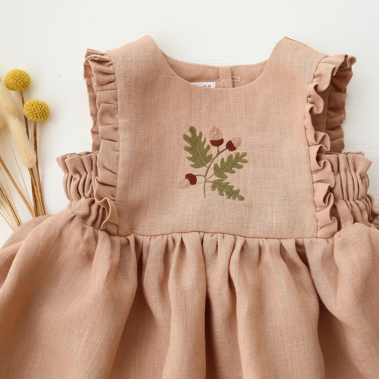 ボディのリネン生地と胸元の刺繍をお選びいただき、自由にカスタマイズが可能です。