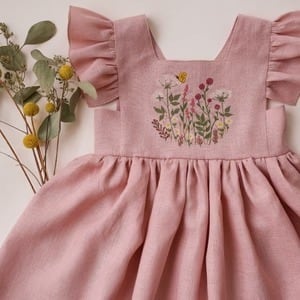 ボディのリネン生地と胸元の刺繍をお選びいただき、自由にカスタマイズが可能です。