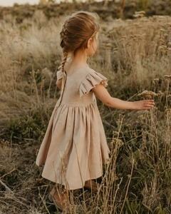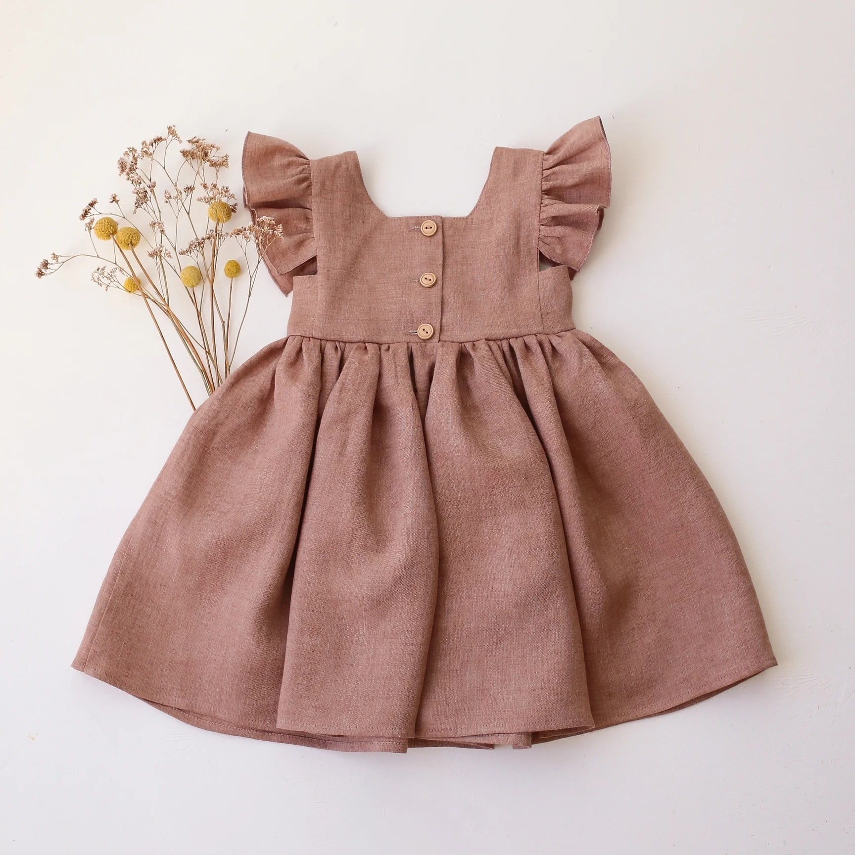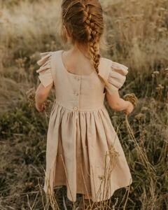 《 予約 》【 Dannie and Lilou 】Flutter Sleeve Square Neckline Dress (wooden buttons down the back)