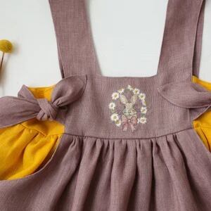 ボディとアクセントカラー(パーツ生地)のリネン生地と胸元の刺繍をお選びいただき、自由にカスタマイズが可能です。