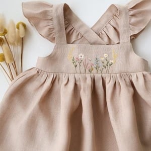 ボディのリネン生地と胸元の刺繍をお選びいただき、自由にカスタマイズが可能です。
